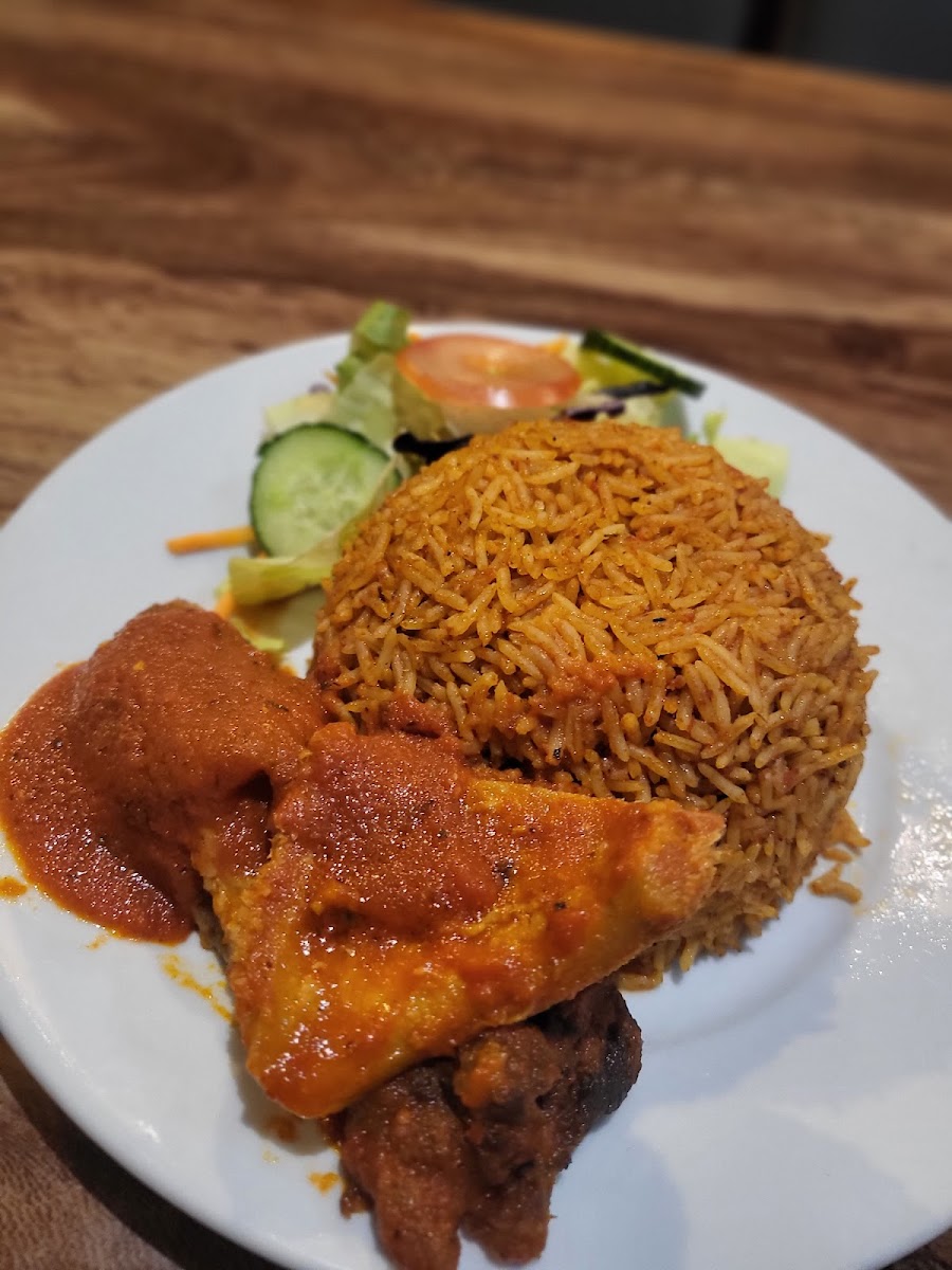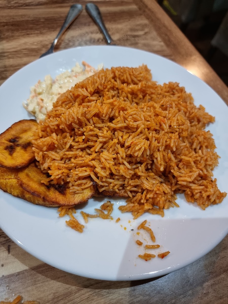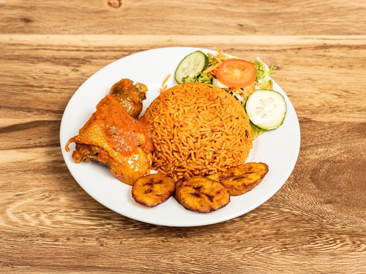 food was great. I ordered jollof and it came with plantain and meat. It was Delicious. I recommend