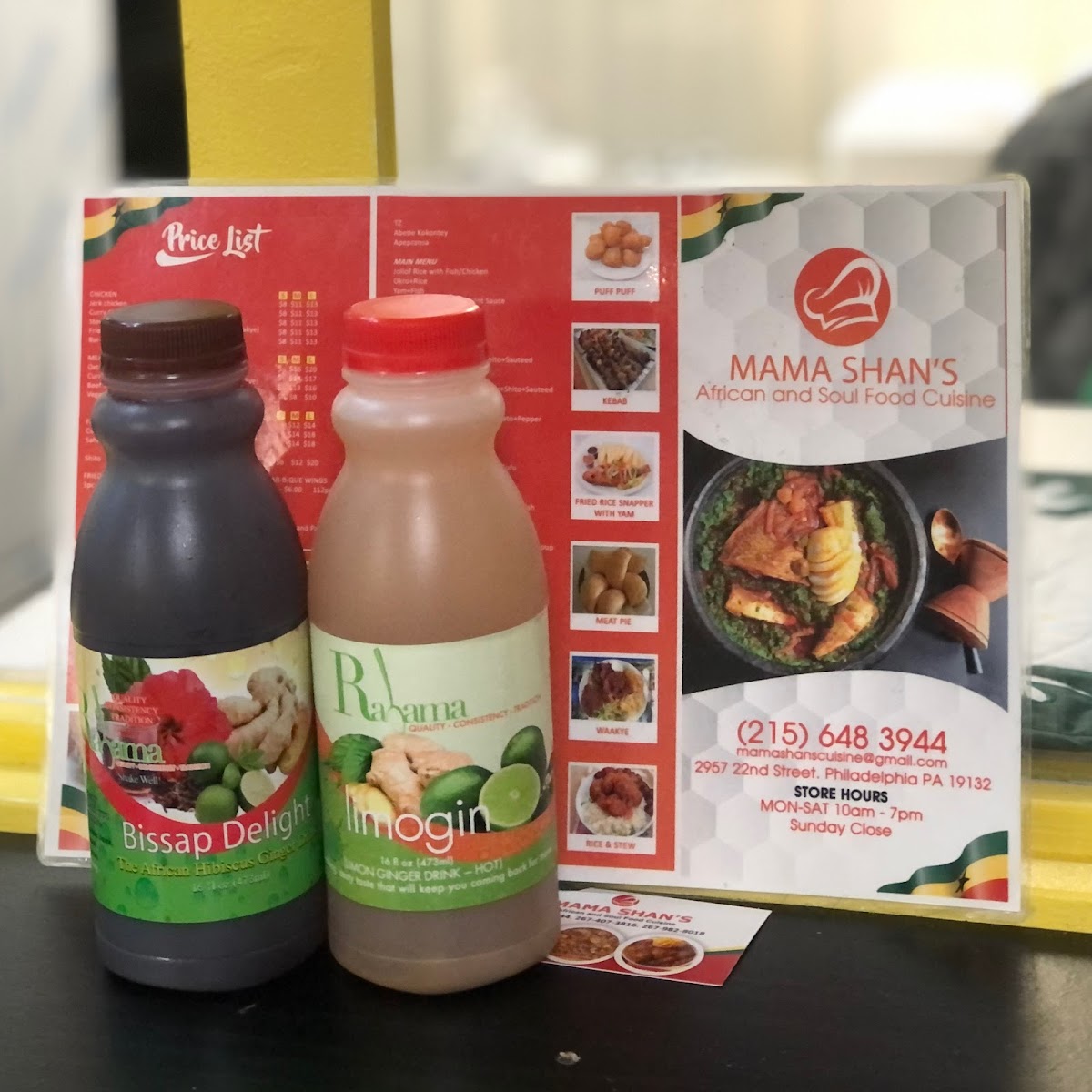 Ghana Style Waakye comes with Talia (spaghetti), a boiled egg, shito, gari, stew, and your choice of meat.