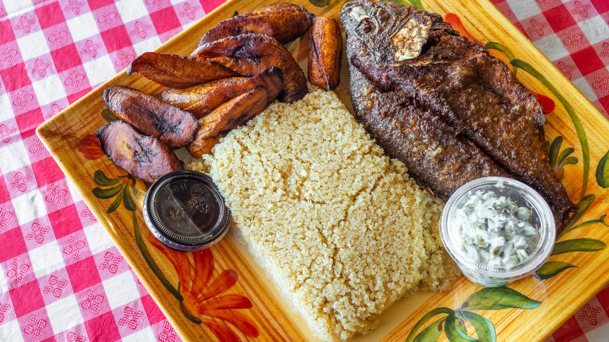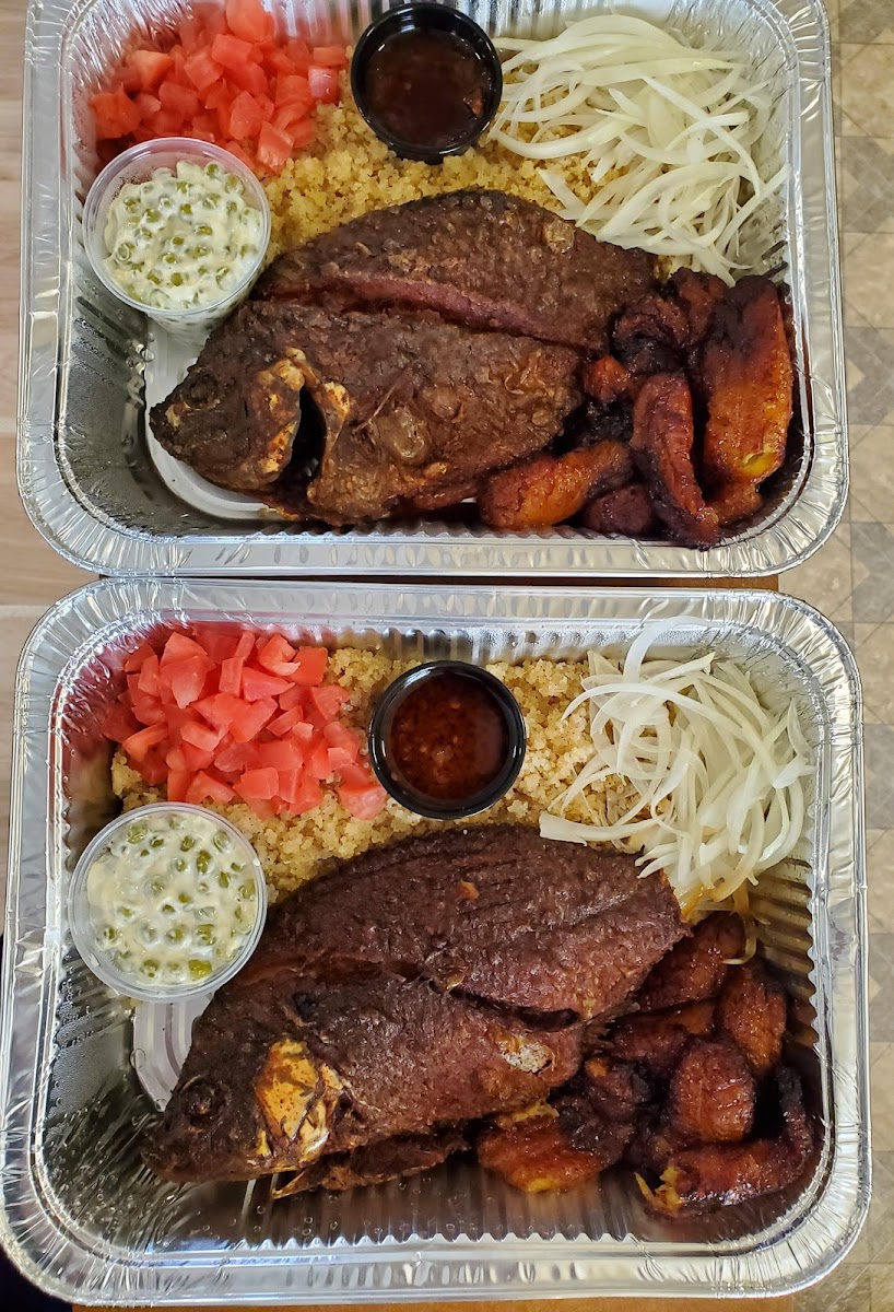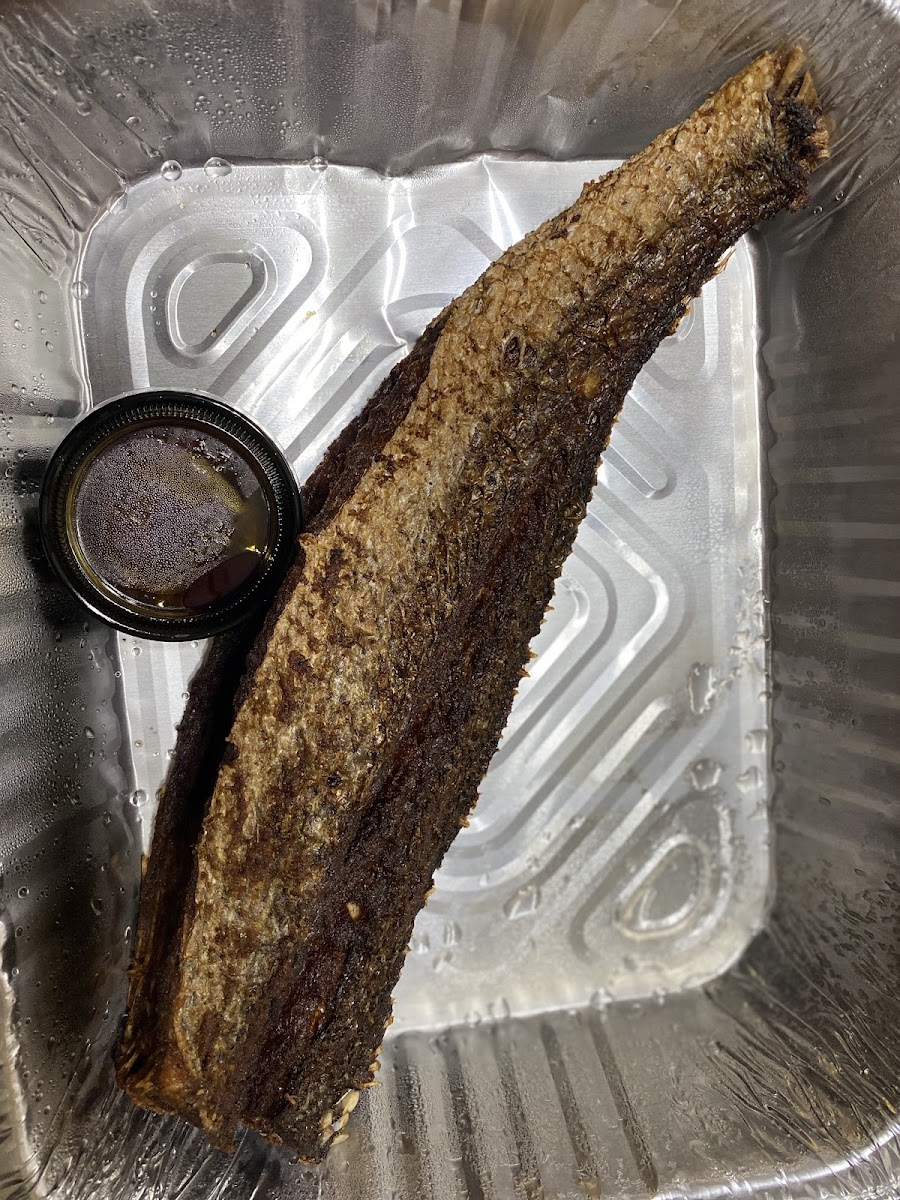 I ordered the snapper with dried rice, it comes with pepper sauce. The snapper is big enough to feed a family. I also ordered the tilapia and Crocker fish by itself. The fishes were fried to perfection and this was one of the best pepper sauce I’ve had in a long time. If you’re ordering the snapper do it In person I don’t believe this is an order they accept over the phone. Even though I ordered it on the phone it wasn’t placed until I got there and I live 40 minutes away, I think that’s because of the price. I’ll definitely visit in the future