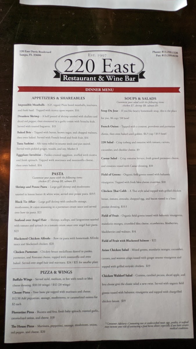 choose penne, bow tie, or linguini, and pair it with marinara, alfredo, or garlic & olive oil. add grilled chicken or homemade meat sauce for $4, shrimp for $5, or veggies for $1 ea.