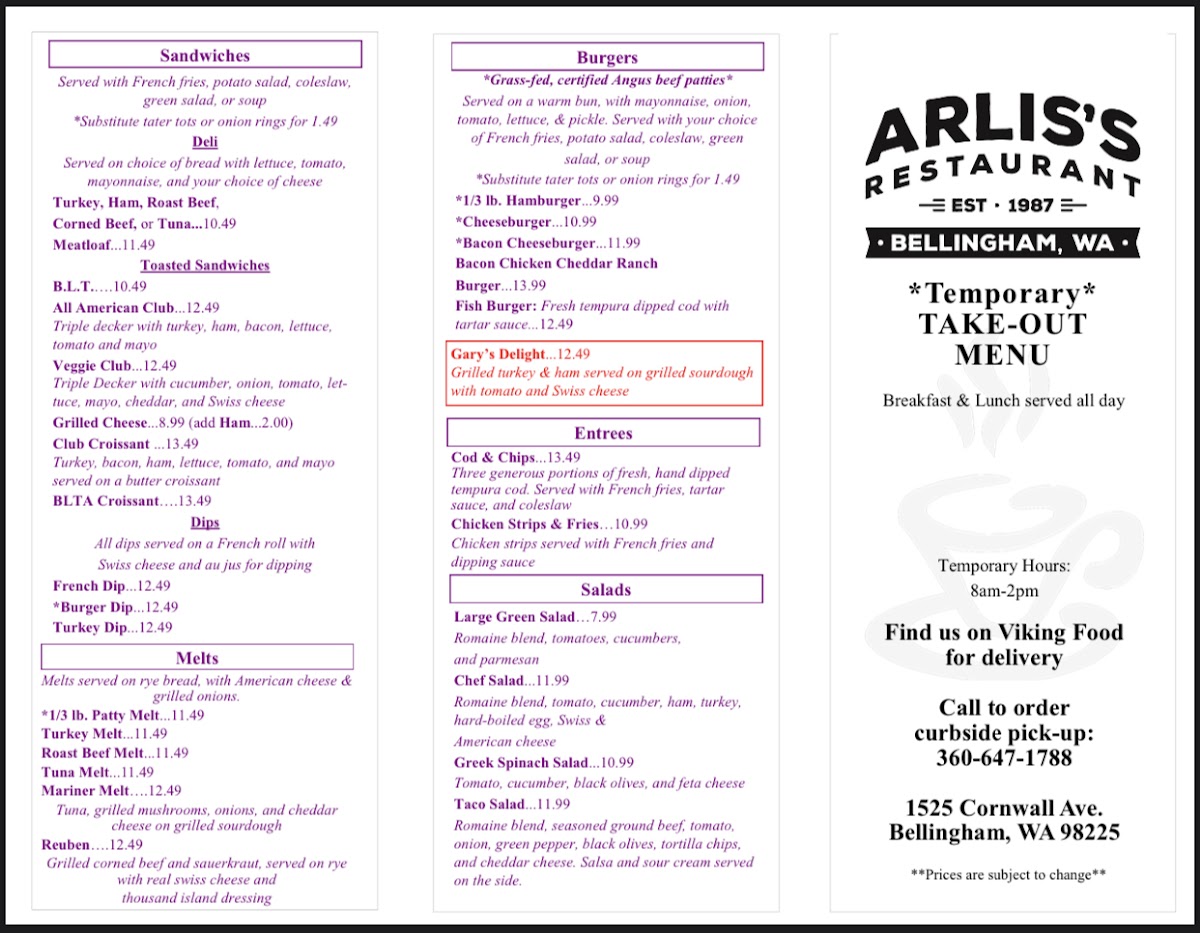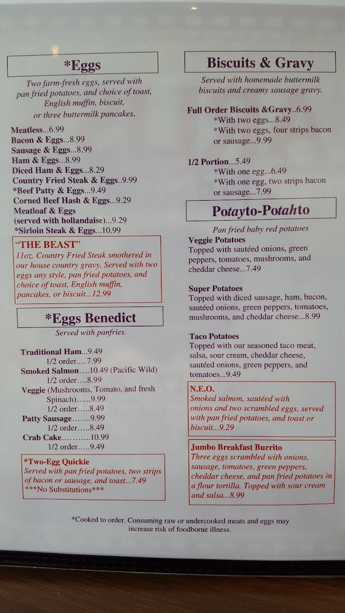 Pacific wild smoked salmon, sautéed with onions and two scrambled eggs, served with arlis's fried potatoes, and choice of toast or biscuit