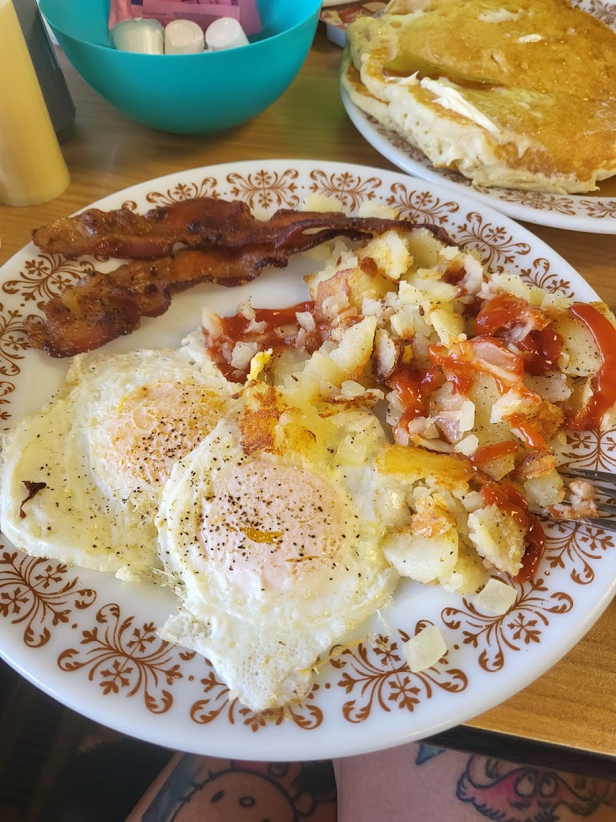 My boyfriend and I stopped in for breakfast on the way back to NC this morning after looking for a local place to try. We were immediately greeted, seated, and brought our drinks. Our food was amazing! I had the State Line Mess which I highly recommend. The biscuits and gravy are also a must. Everyone who came in seemed to know each other and the staff was so beyond friendly. We will definitely be back when traveling to Steubenville, Ohio to visit family.