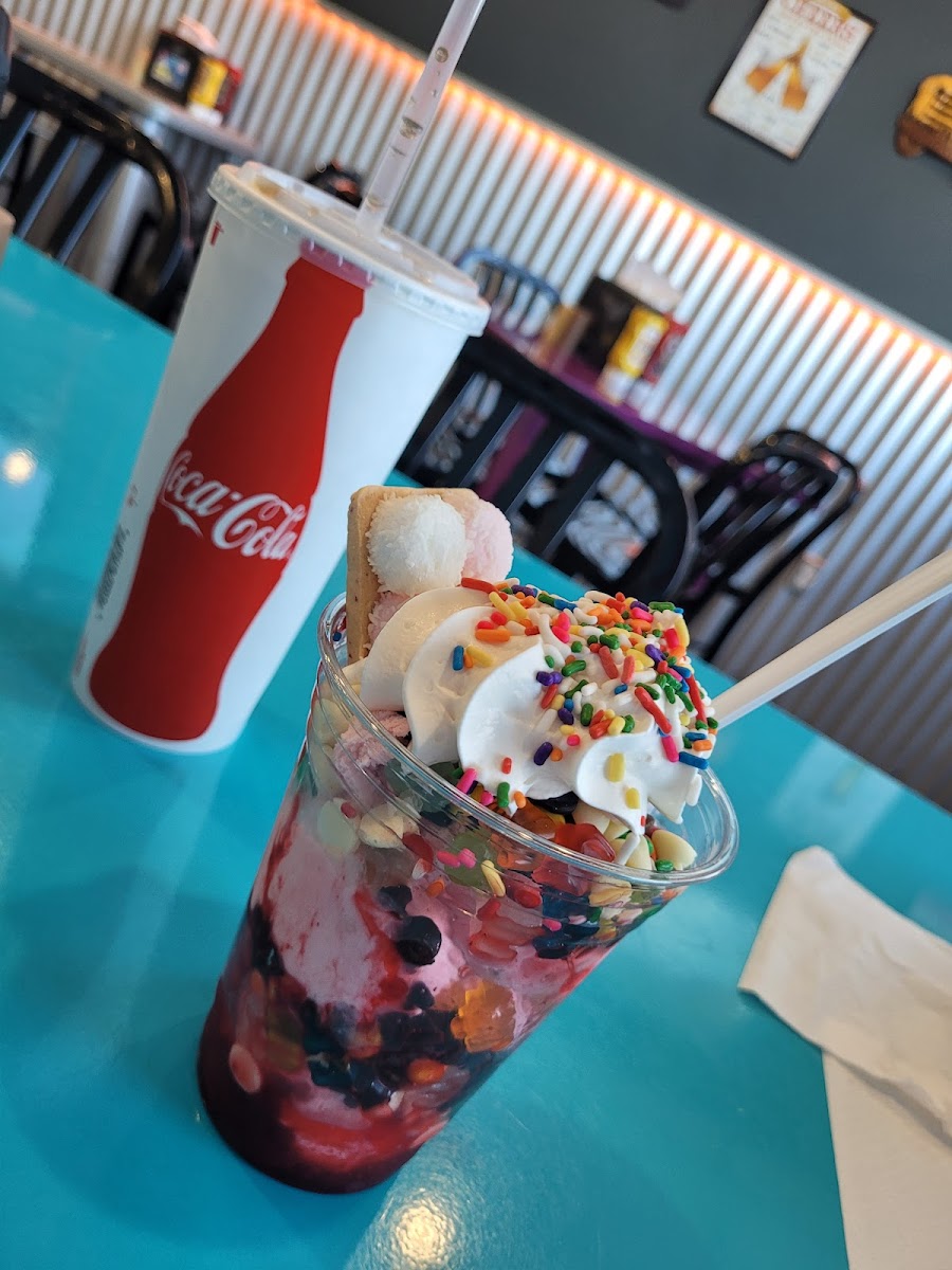 This Diner was an absolute *GEM* (literal and metaphorical) we’ve been roadtrippjng for 2 weeks with our 2 sons which has been its own series of comedic events but this diner was like an oasis to recharge. Delicious ice cream very kind and welcoming service. They let my 2 year old play with their toy . Also I am really into baking cookies and I love cookies and I consider myself an expert here and they sold us cookies that were soooo good. The cookies had chopped pecans and some blueberry fruit preserve in the center and it was like a shortbread almost. If they would be willing I would love that recipe because they were so good and I don’t even know what to call them!