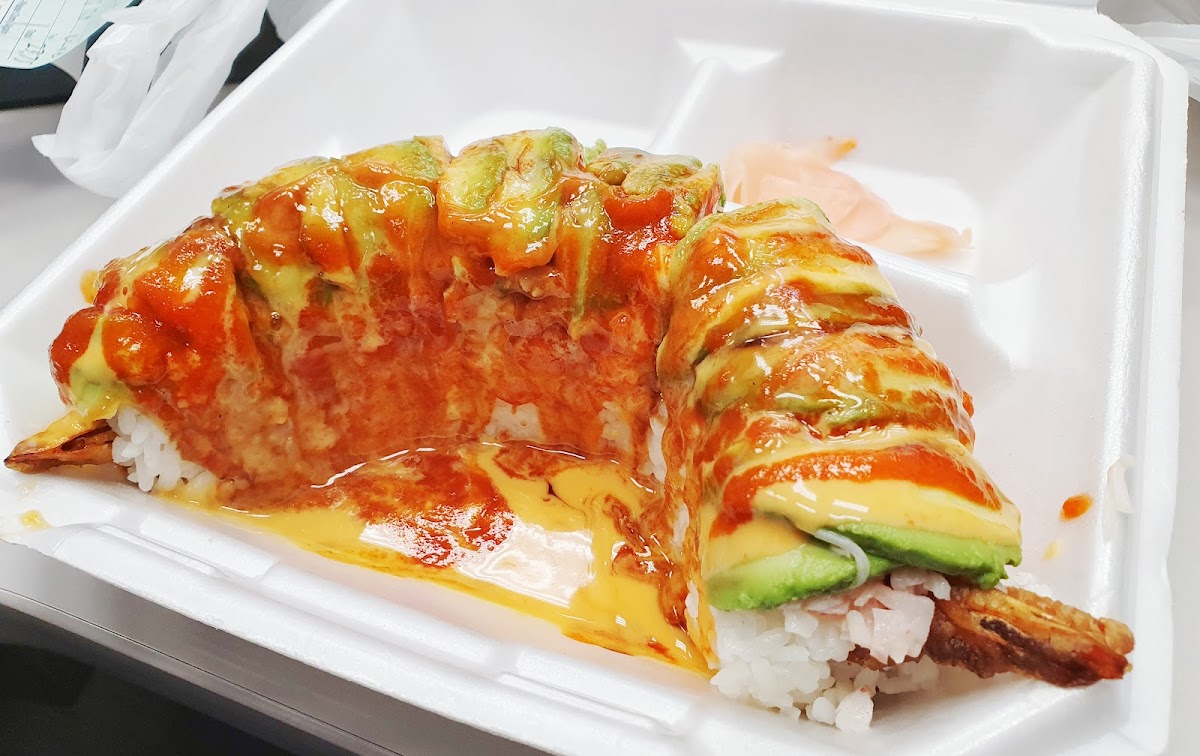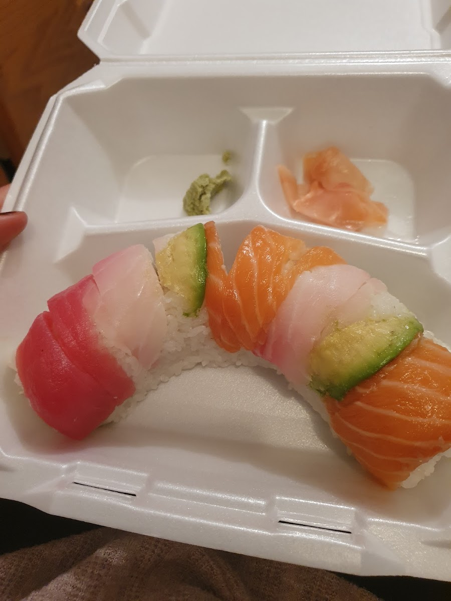 Ordered take out with a friend. The bison burger was recommended and since I was hungry finished it but could have been 2 meals. They have quite a variety of items on the menu from sushi, to pizza, to burgers along with a small convenience store inside. There were 3 small tables on the inside where you can eat. Walked over and did take out and didn't have to wait long for it. Nice option.