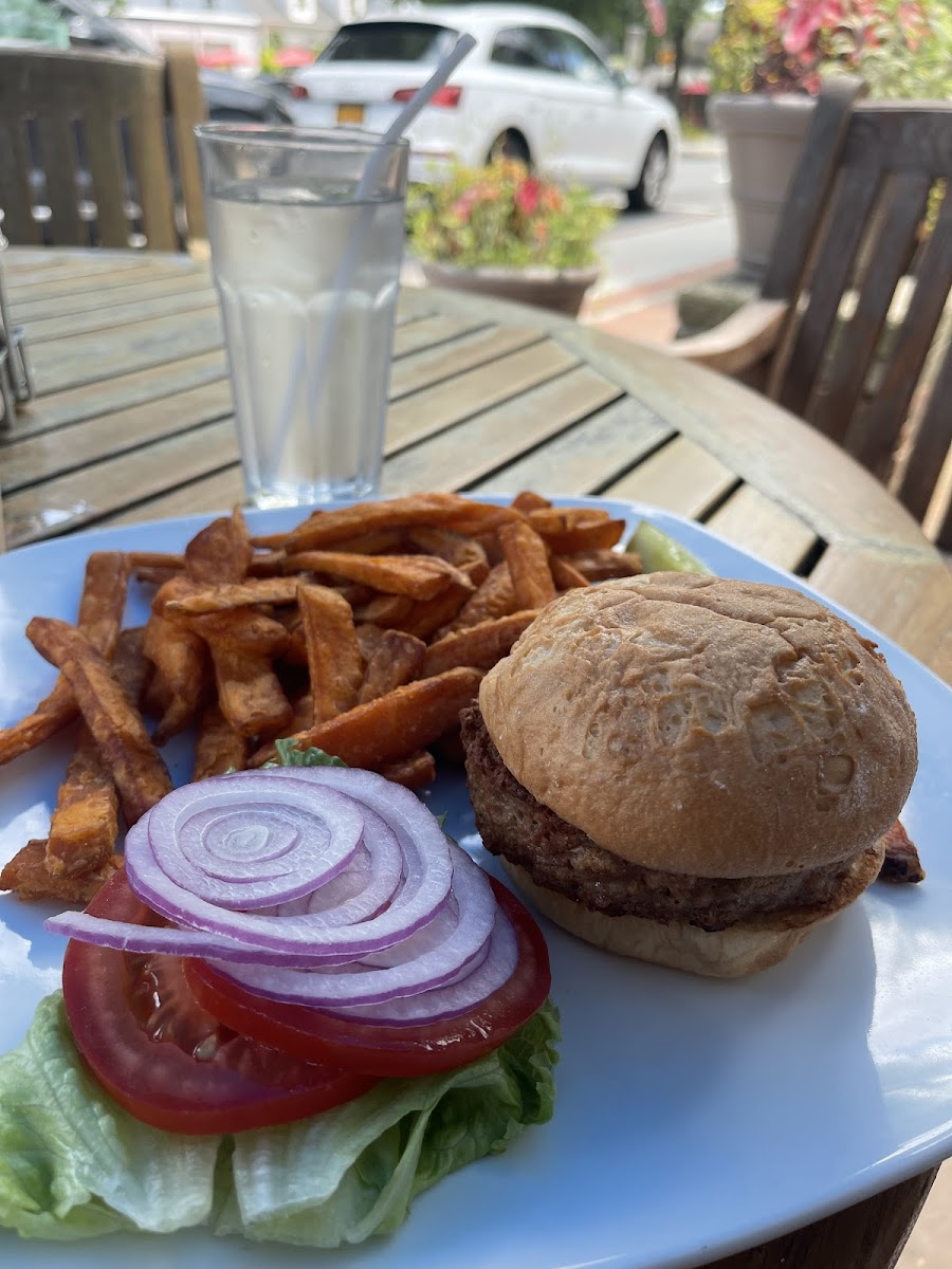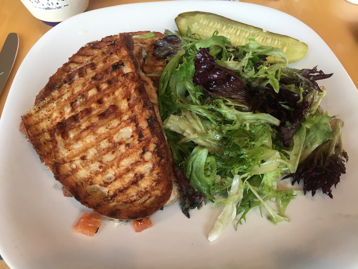 Absolutely delicious smoked salmon platter with gluten free bun, cream cheese, hard boiled egg, capers, raw sliced red onion and sliced tomatoes .. it was so delicious I can't wait to return! Service was excellent, atmosphere good .. the bathroom is a bit creepy ..