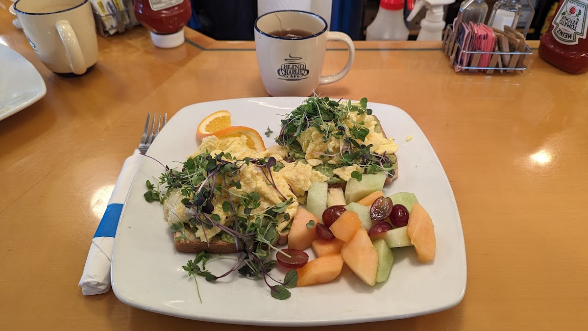 Had avocado toast with a fresh fruit cup! It was delicious! We sat outside and the weather was perfect!
