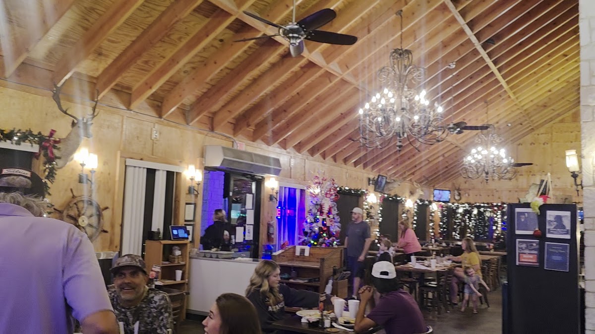 Food has been good every visit here. Often a longer wait for service, no hurry atmosphere but friendly staff. Good variety on menu food items. Not the cheapest place in town, but food quality matched the price as very good meal. Atmosphere is pro-hunt and pro-fishing with trophy taxidermy on display. Venue gas always appeared clean and family friendly. Bar seating popular with locals. Definitely will return for a meal again, we drove 15 miles over just to get lunch today. Scenic drive over the Whitney dam.
