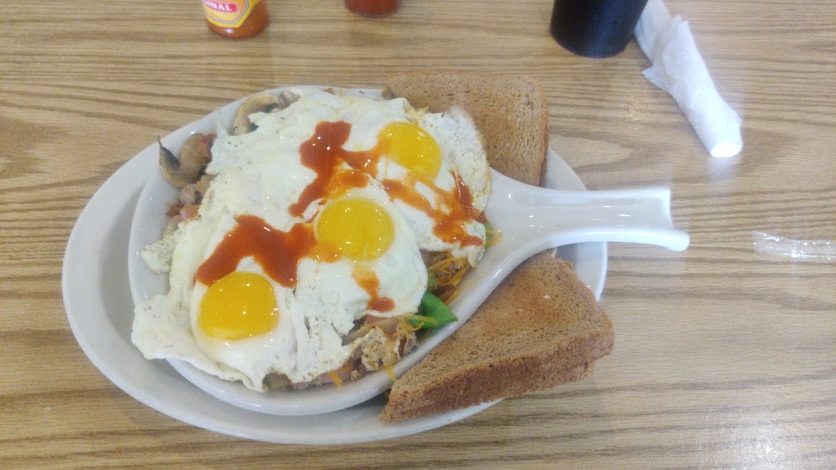 I'll start by disclosing I'm pregnant and having strong cravings! This food 100% met my expectations. I ordered a garbage skillet with eggs over easy and boy, was it delicious! I got a side of yummy raisin toast with it which was toasted to perfection & already buttered! Also ordered a side of French toast which was also made perfectly. My taste buds were very pleased! Highly recommend. The only slightly negative observation of my order was the coffee was pretty weak, too much water. Overall, I was still very happy with my meal & will definitely be ordering more in the future.