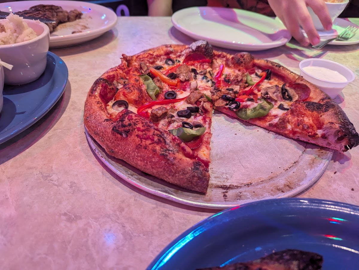We stopped while on a trip and were so glad we did. They had a great burger special, but we passed on that. We opted for a half order of onion rings and they were the best we've had! Their ranch dressing was also so good and we were happy we tried to pizza. The crust was thin and perfectly cooked, the sauce delicious and the right amount of pepperoni and cheese. We didn't get the name of our waitress, but she rocked! It was a great experience. I just wish we had one near our house!