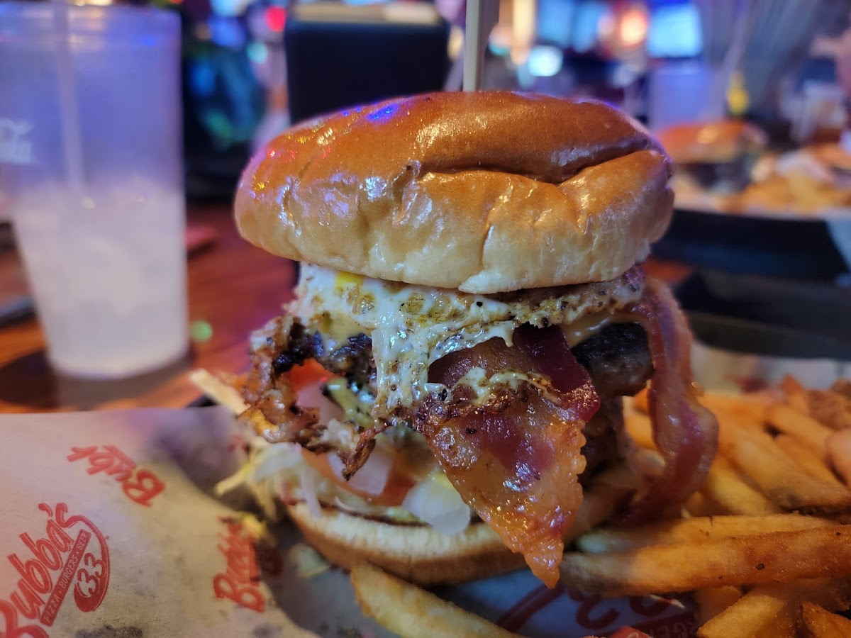 Bubba’s 33 is such a great spot for a casual night out! We tried the cheeseburger and mushroom burger and both were absolutely delicious. The patties are thick and hearty, yet still super juicy and flavorful, not dry at all. Added a fried egg to the cheeseburger (definitely recommend!) The kids’ menu is a great value and makes it easy to bring the whole family along. For dessert, the Oreo brownies are made in-house and served warm, and they were the perfect sweet finish. The atmosphere is fun and welcoming, with plenty of TVs and a sports-den vibe that keeps the energy lively without feeling overwhelming. Definitely a place we’ll be coming back to!