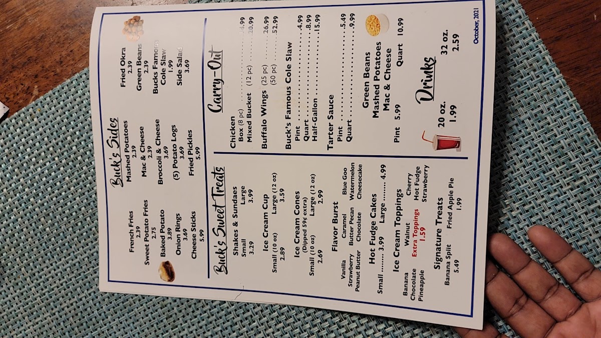 I have visited for lunch for the last 2 days. I have found the staff to be quite polite and friendly. The first day there was a little weight but to compensate for this they did give me a free sweet tea. Kudos for me :-) today I decided to call in my order since I am going during lunch hours and when I got there my food was already ready. The staff once again was very polite and friendly. My food is hot and fresh. I ordered pork chops with fried green tomatoes and broccoli and cheese with a roll. I think Bucks have a very nice menu and variety. I haven't tried their ice cream but hey who can mess up ice cream it all looks great here. If you are coming through the Alexander City area, I would recommend that you stop there if you have the time because it's not on the main Highway 280 is a little off the beaten path on Highway 22. Thanks for reading :-)