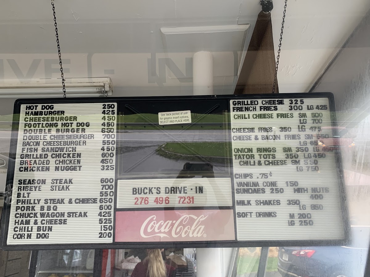 Buck's Drive-In sits at 1212 E Main St, Saltville, VA 24370, United States and is classified as an American Restaurant. With 280 user reviews, it features a concise menu focused around Double Cheeseburger and Tots.