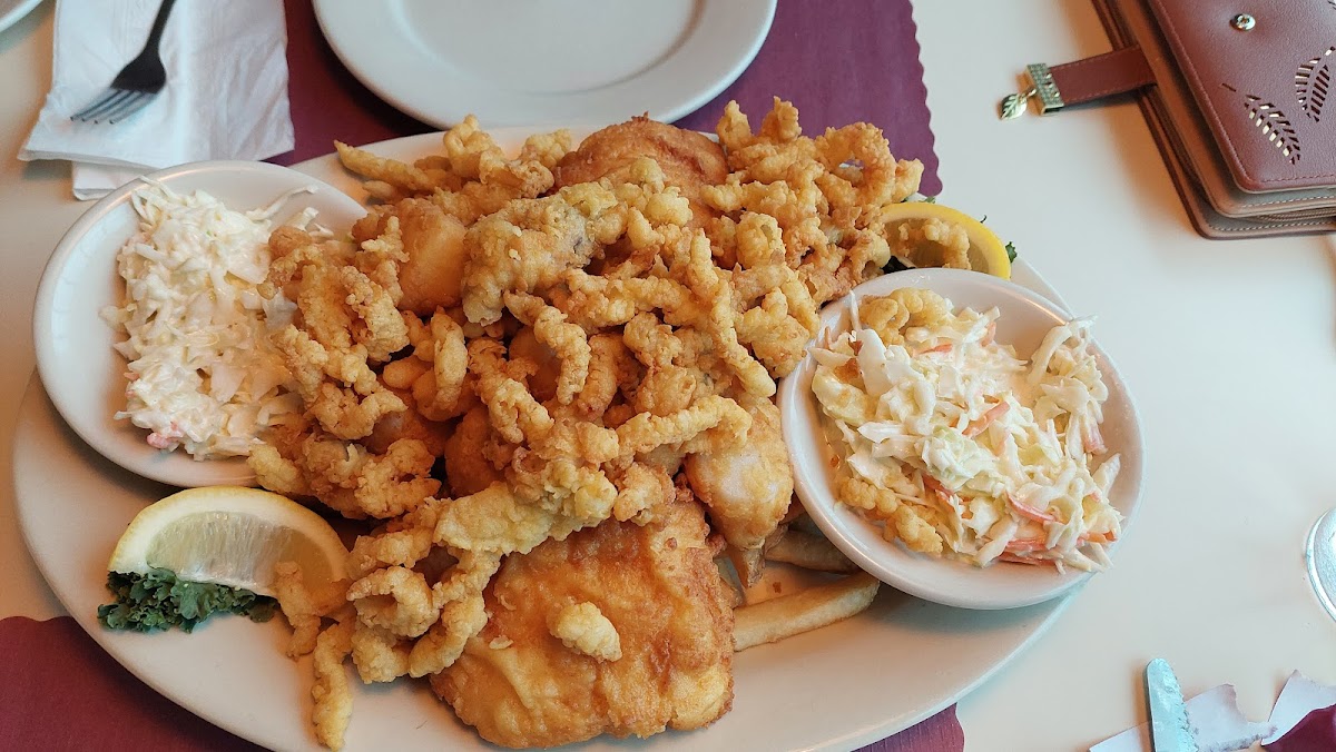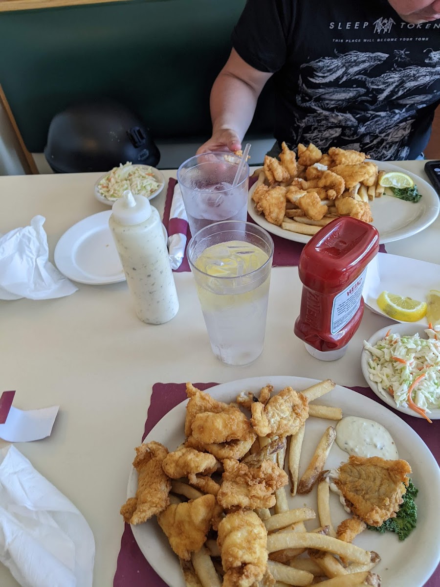 Staff is very friendly. One of the few restaurants left with a salad bar. I usually sit near salad bar, and staff keeps it well stocked and very clean. I love the baked haddock newburg and thick cut maple glazed pork chop. Plenty of parking and reasonably priced.