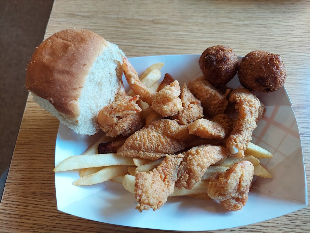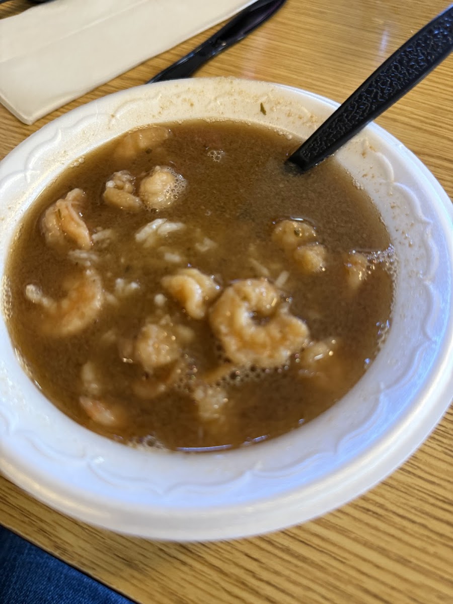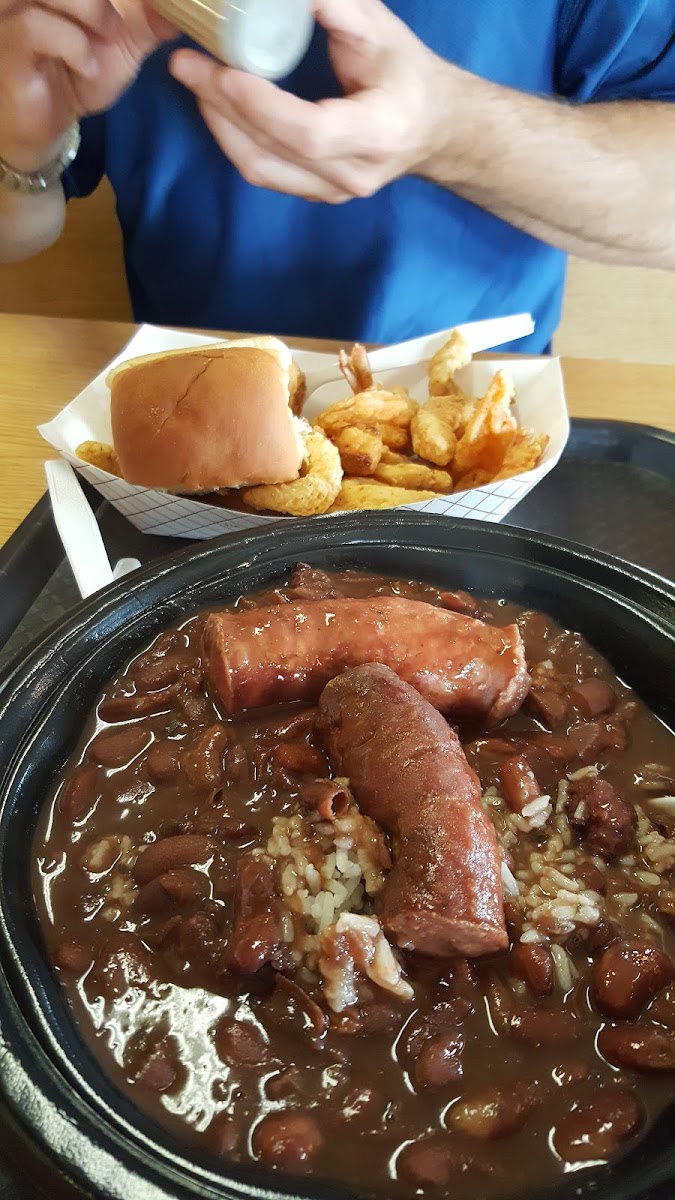 I had the shrimp gumbo and red beens and rice with sausage and it was delish. The lady’s were very nice and a comfortable and clean atmosphere :) and service dog friendly.
