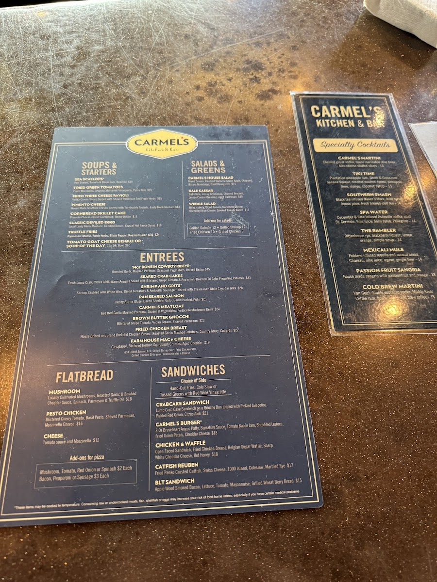 SHRIMP SAUTEED WITH WHITE WINE, DICED TOMATOES & ANDOUILLE SAUSAGE FINISHED WITH CREAM OVER WHITE CHEDDAR GRITS
