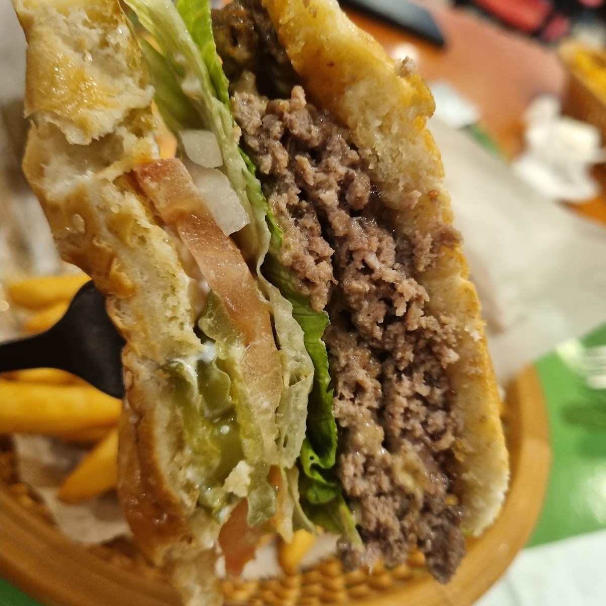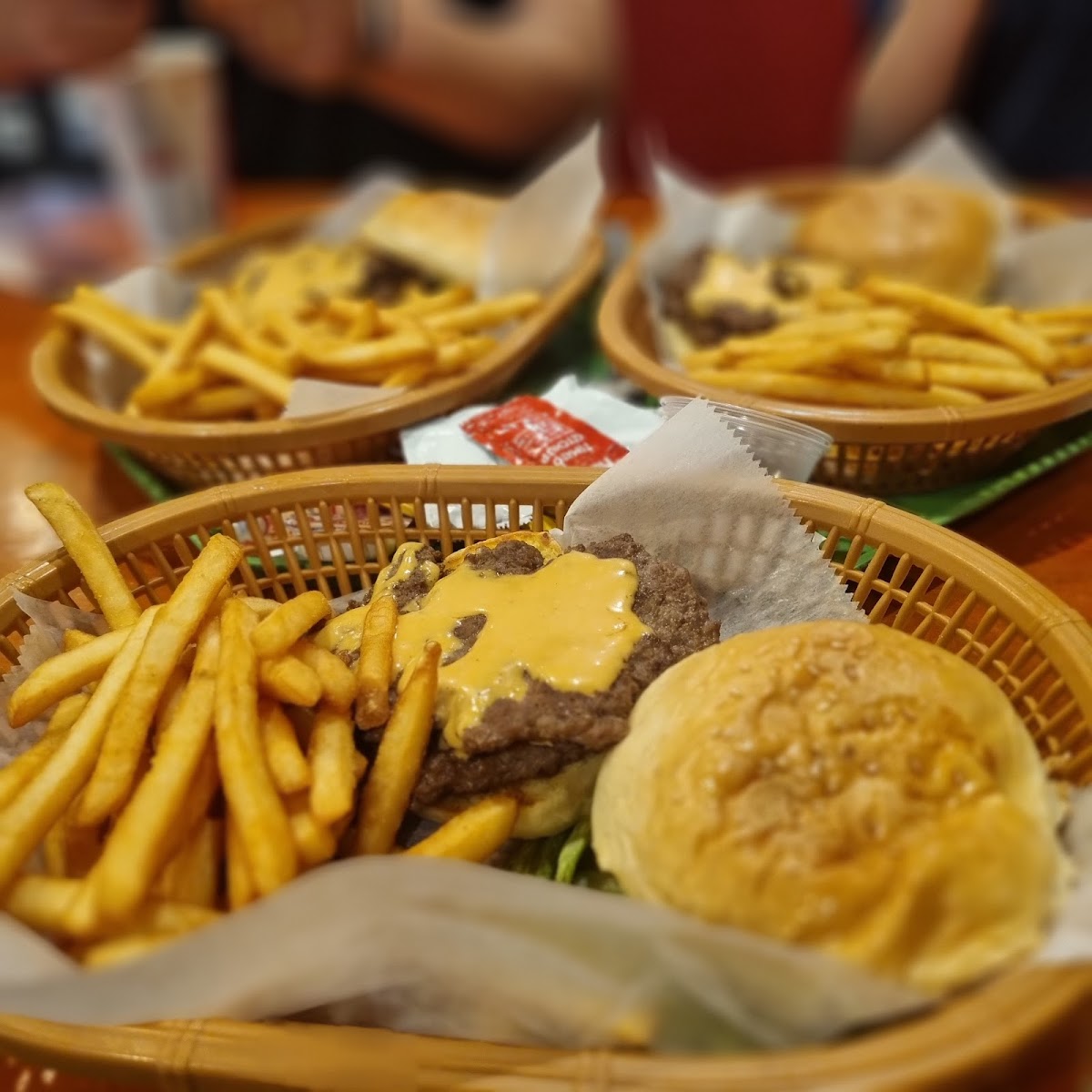 Really tasty burgers, ample portions for the chicken bulgogi, and great breakfast - all 24/7 hours open for decent prices. Some reviewer mentioned the Smash Burger “doesn’t taste like smash burger”, well I ate it several times in the states and it tastes similar to Smash Burger. Someone also said “no secret sauce”, I don’t know how anyone could miss the sauce, it is literally served open faced with the sauce slathered all over the top. Unless the reviewer mistook liquid for solid cheese. Another reviewer said the food was pricey. Really? It’s $8.50 for a double meat smashburger with fries. Have you seen how much a burger set costs in America right now 2025? It’s $15.00 for a combo, or $10 for just the burger. Another reviewer said “some genius at FSS decided to make a portion of the restaurant a kids play area”? Maybe the entire base doesn’t revolve around you? The kids room is partitioned off with a door and closed so noise doesn’t leak out, and the restaurant is huge with tons of seats and almost never full.