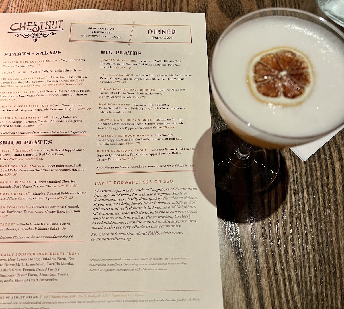 NC Tail on Shrimp, Cheddar Grits, Benton’s Bacon, Cherry Tomatoes, Arugula, Serrano Peppers, Peppercorn Cream Sauce (GF)