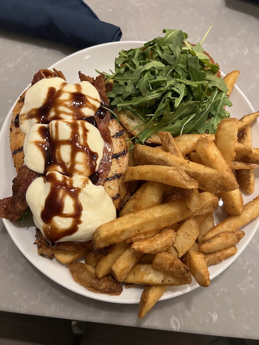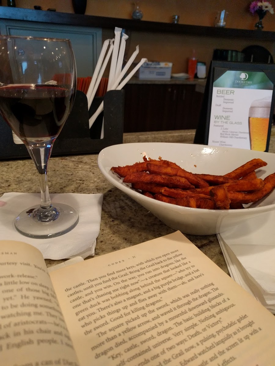 Stayed overnight for a one day work trip. After a 51/2 hour drive the last thing I wanted to do was drive anywhere for dinner ( didn’t want food in take out containers either) sat at the bar, had a Caesar salad and pasta primavera, added salmon. The salmon was perfectly cooked as ordered ( medium rare) and it was excellent! A bit pricey, but excellent food and service!
