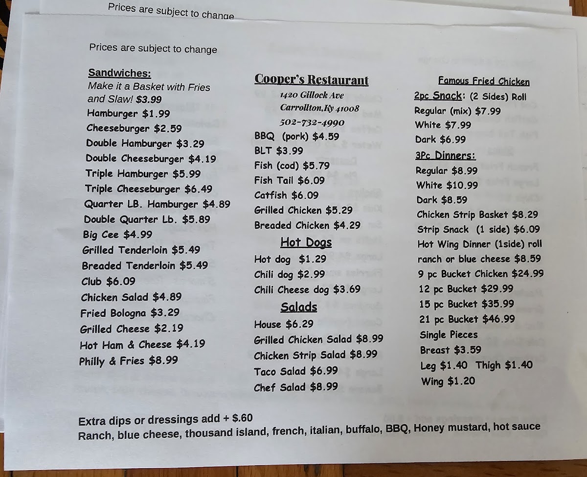 Kid's Menu