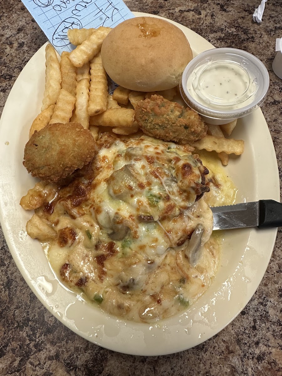 This was a first visit. The server attended to us quickly. Would have given 5 stars, but it took about 50 minutes to get our food. They explained later it was due to running out of baked potatoes. By the way, the baked potatoes are huge! Our meals were tasty and good portions. As an appetizer, we ordered onion rings and jalapeno peppers, which are very good.