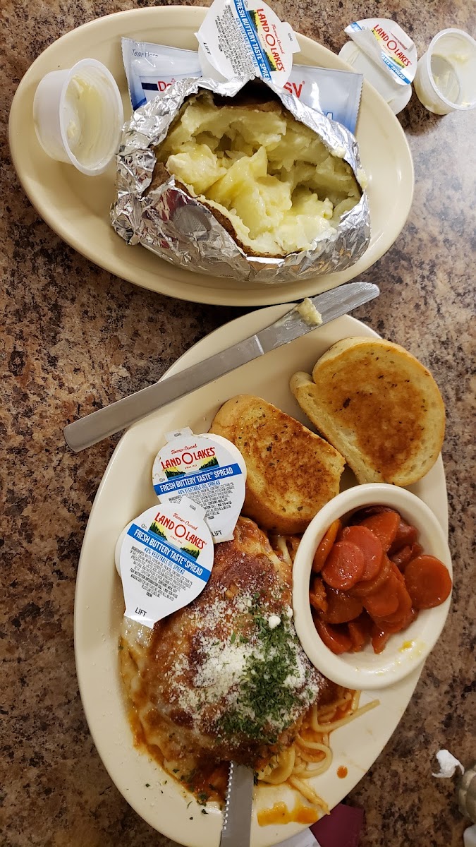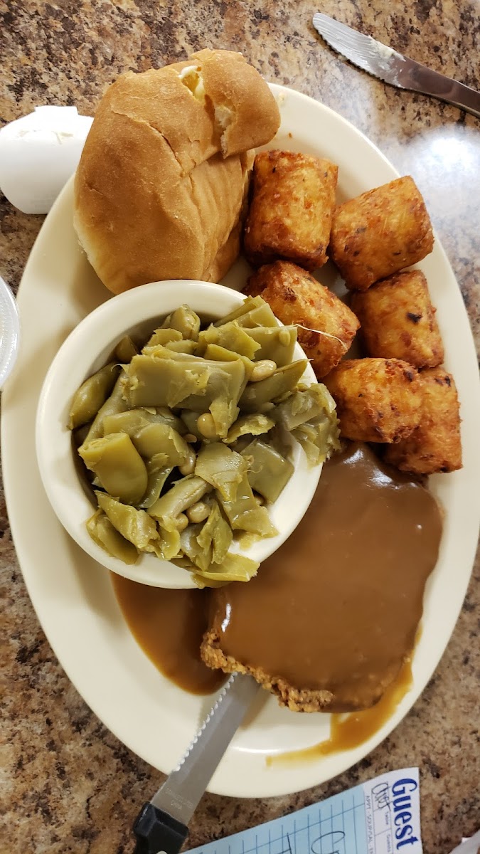 Our first time in the Byrdstown area and we were happy to find this place. I got chicken parmesan with baked potato and garlic bread and glazed carrots. Good size portions and good price, but the BEST chicken parmesan I've had in ages. My wife got country fried steak with green beans and potato kegs (think double size tots with corn and onion in soft center). Shortstaffed, so choose your time to visit wisely. So glad to have found this restaurant. It is now in my Top 5 anywhere. If you're in the Keys, go to Burdine's; if you're near Pulaski, go to the Hickory House; if you're in Spartanburg, go to the Beacon; if you're in Carrabelle, go to the Fisherman's Wife; if you're anywhere even in the rough vicinity of Byrdstown, go to the Country Kitchen. You won't be disappointed.
