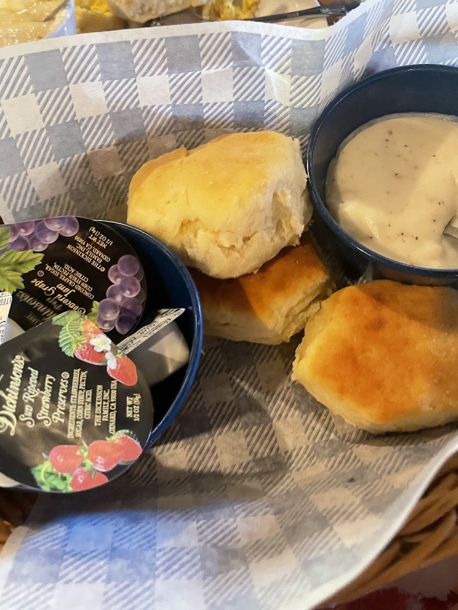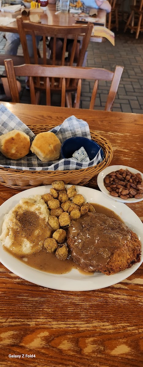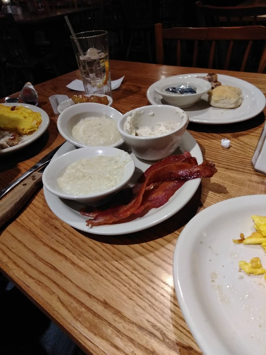 The best part of Cracker Barrell is the Old Time Country Store. We visited today and had the Grandpa Breakfast & the Grandma's Breakfast. I had the country fried steak with one and th3 country fried Chicken with the other. We also had sausage with the grandma's Breakfast. Both come with a country side... two eggs any style and a side of biscuits and sausage gravy! Just because you can't come to CB and not order pancakes we had a side of pancakes too! The wait wasn't long, Carson (our server) was great and the food was good too! Now CB has a rewards program!