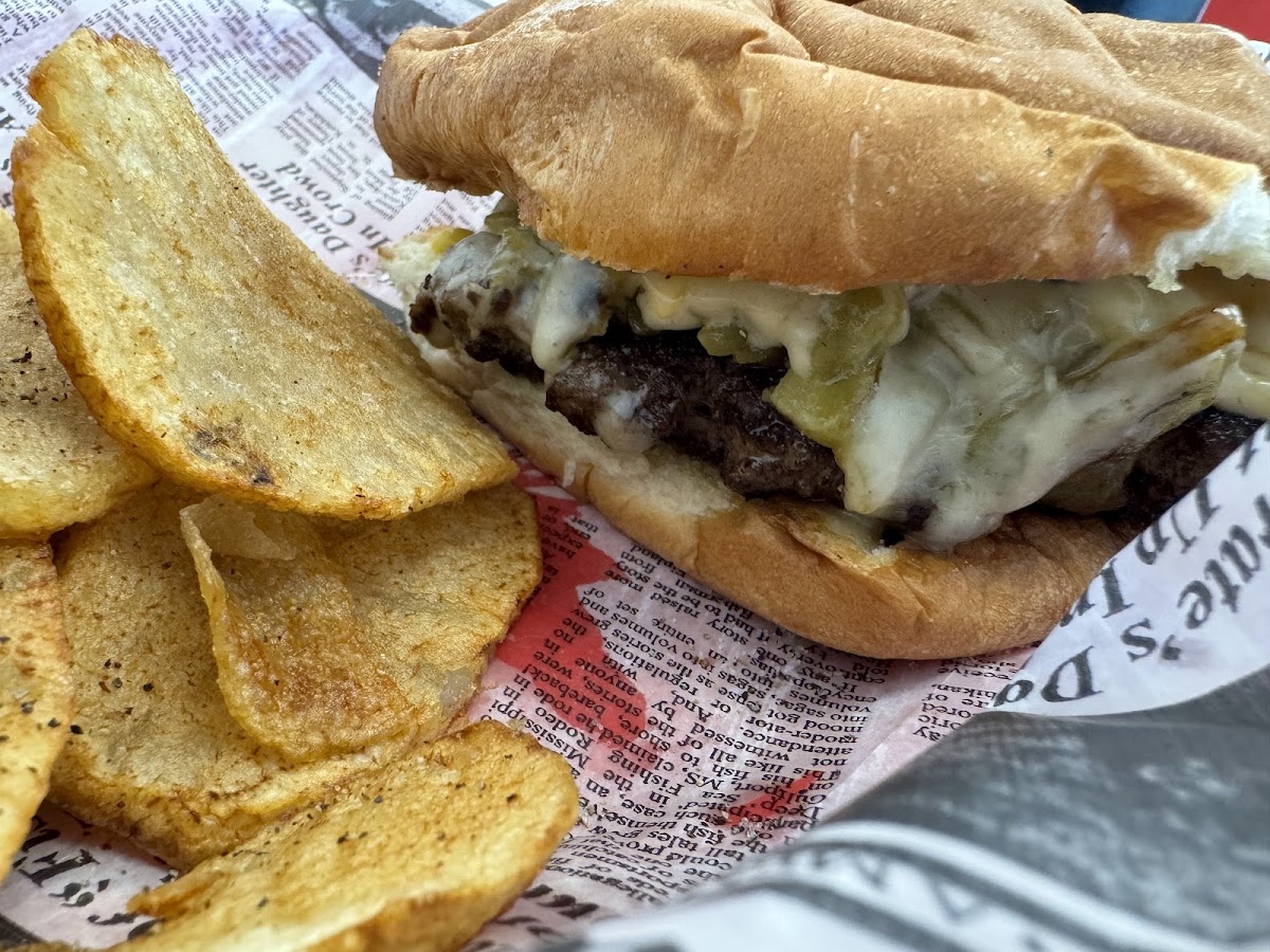Ordered a Green Chile Burger with onions and tater tots. I waited 20 minutes, and they switched the tots for chips. I was a bit upset because of the wait time but when seeing the food and tasting it, it was really worth the wait. I'll be coming back for sure.