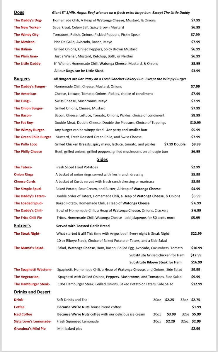 Fritos, homemade chili, and Watonga cheese. Add jalapeños for an additional charge.