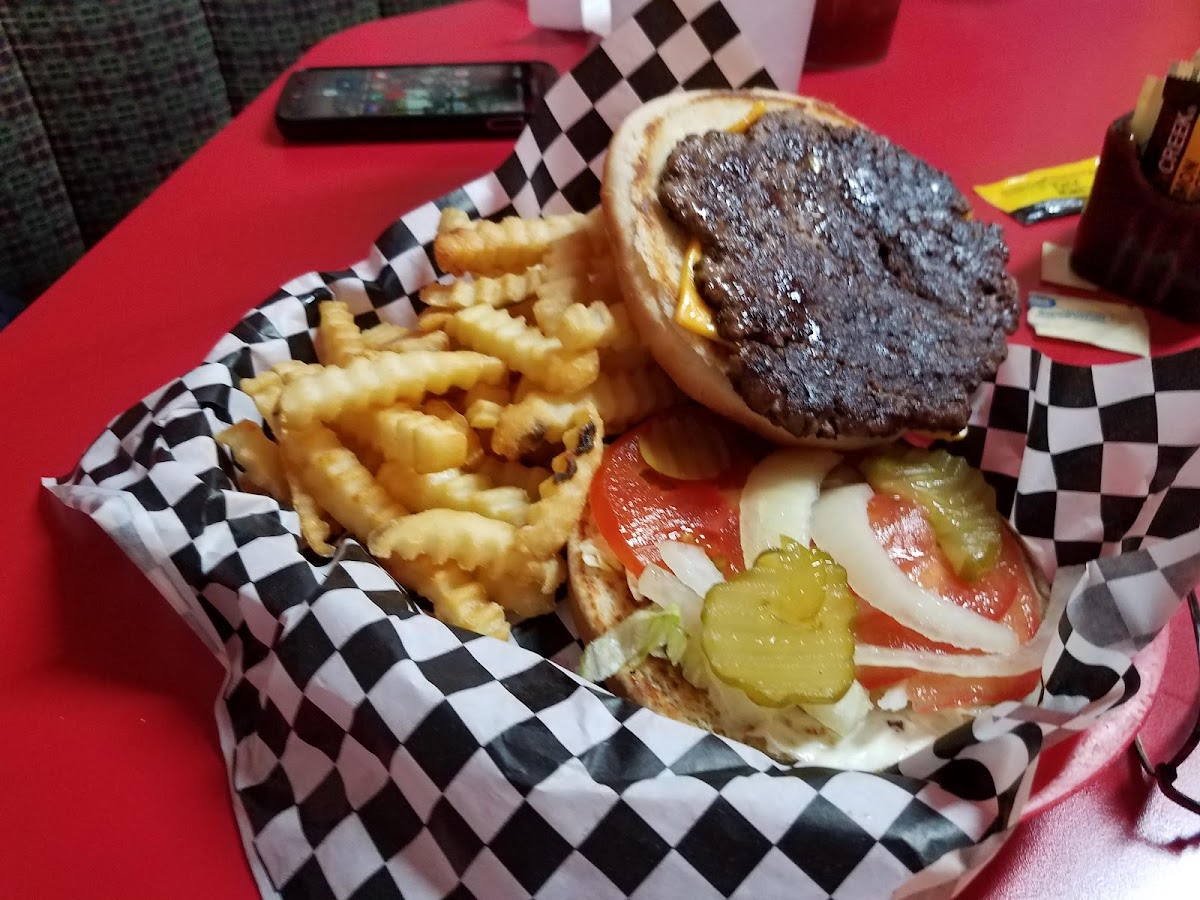 Great burgers and catfish. The menu is full of good options. Prices are great and the staff is friendly.