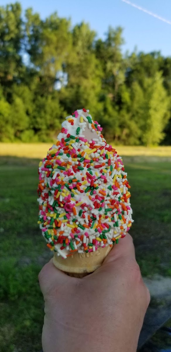 This old fashioned soft serve ice cream place is great! It has good food with good prices. I got a butterscotch sundae that was delicious and my dad got a medium twist cone that was huge! The outdoor picnic tables were in a nice setting.