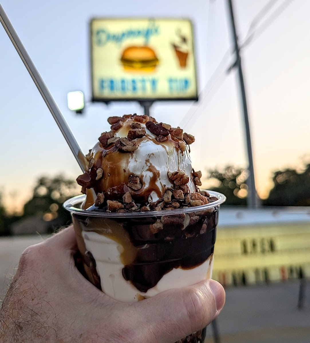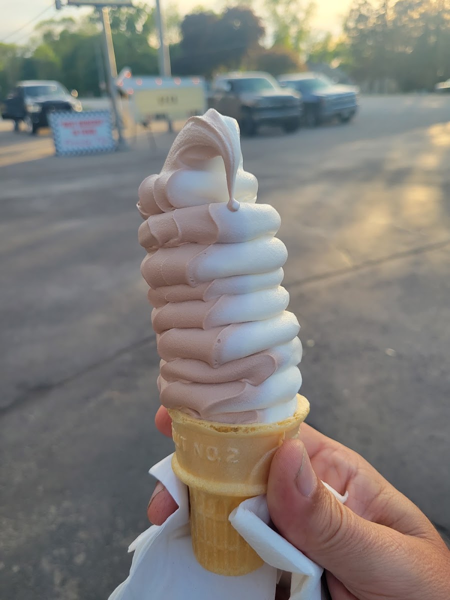 Juiciest most delicious tasting burger, crispy fries, and best chocolate dipped, waffle cone twist I've ever had! So good!