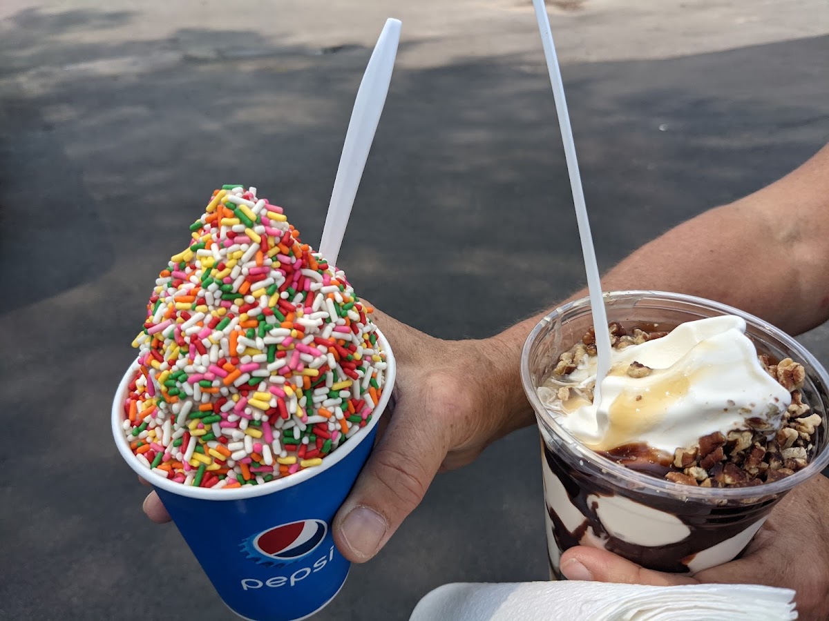 Went here in 7/26/2022 @noon…. Good timing! They open at noon! Been going to this establishment now for 3 years. A close friend took me here and I have been hooked since. They have great ice cream sundaes along with a lot of their sweet treats. They also have good food. I have had their burgers- they are good. Fries and cheese curds all good. My fav thing at this place is a chili cheese dog. The hotdog and chili are soooooo yummy! Enjoy the pics. Plenty of seating outside at tables. They also have older 50’s style music playing. Workers are all very nice and professional/kind. Note: CASH ONLY. No checks or credit/debit cards(that is not a negative either- this is a privately owned biz that is seasonal, any time u use a credit or debit card they have to pay a fee. So be cool like me about the cash only). Until the next review, Steve-O, out!