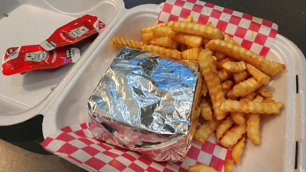 Griddle cooked deli style hamburger... The best kind of burger... And this one was one of the best I've ever had. The fries, although frozen, were perfectly crisp on the outside and soft on the inside. Fantastic food!