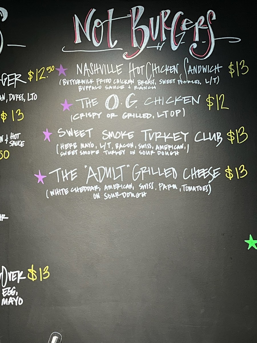 2 smash burgers, caramelized onions, Swiss cheese, Duke’s Sauce on Marble Rye Bread