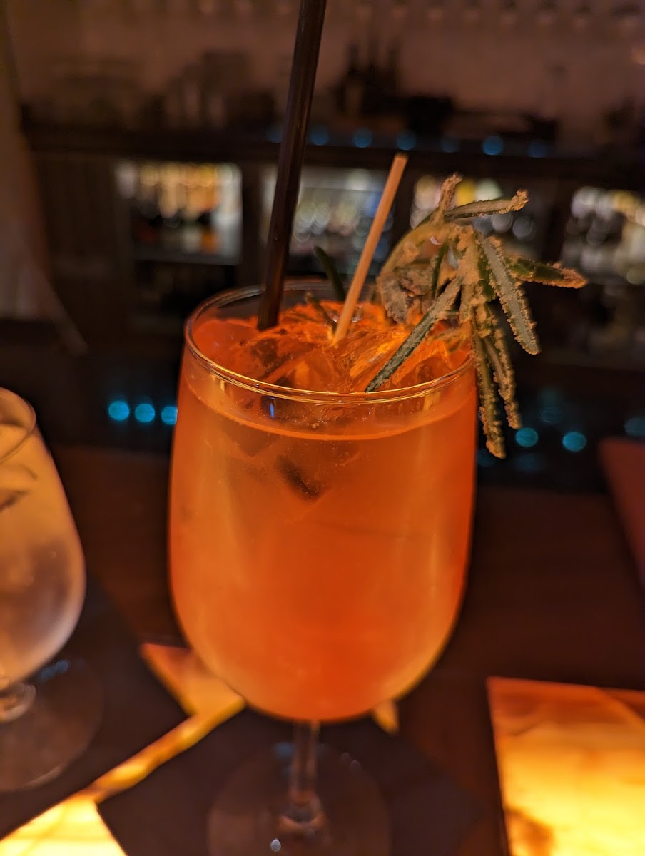 After visiting here a few nights for drinks and food, this really is a place locals come because the food it really good!! For a restaurant in a hotel, the atmosphere once inside is that of a normal, nice restaurant. The cranberry rosemary mule was so good!