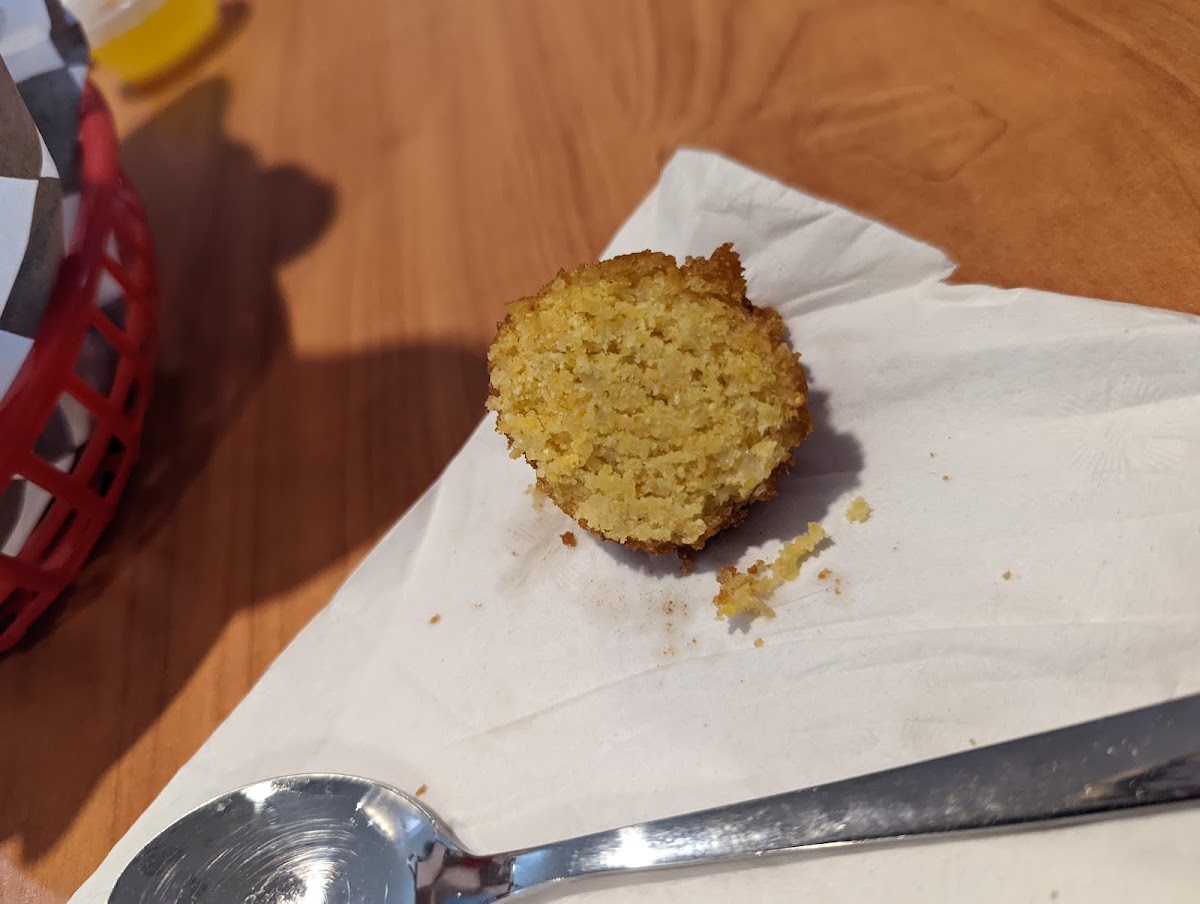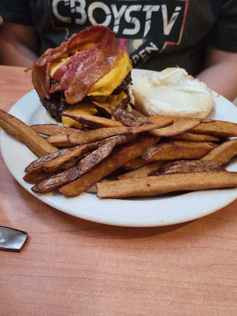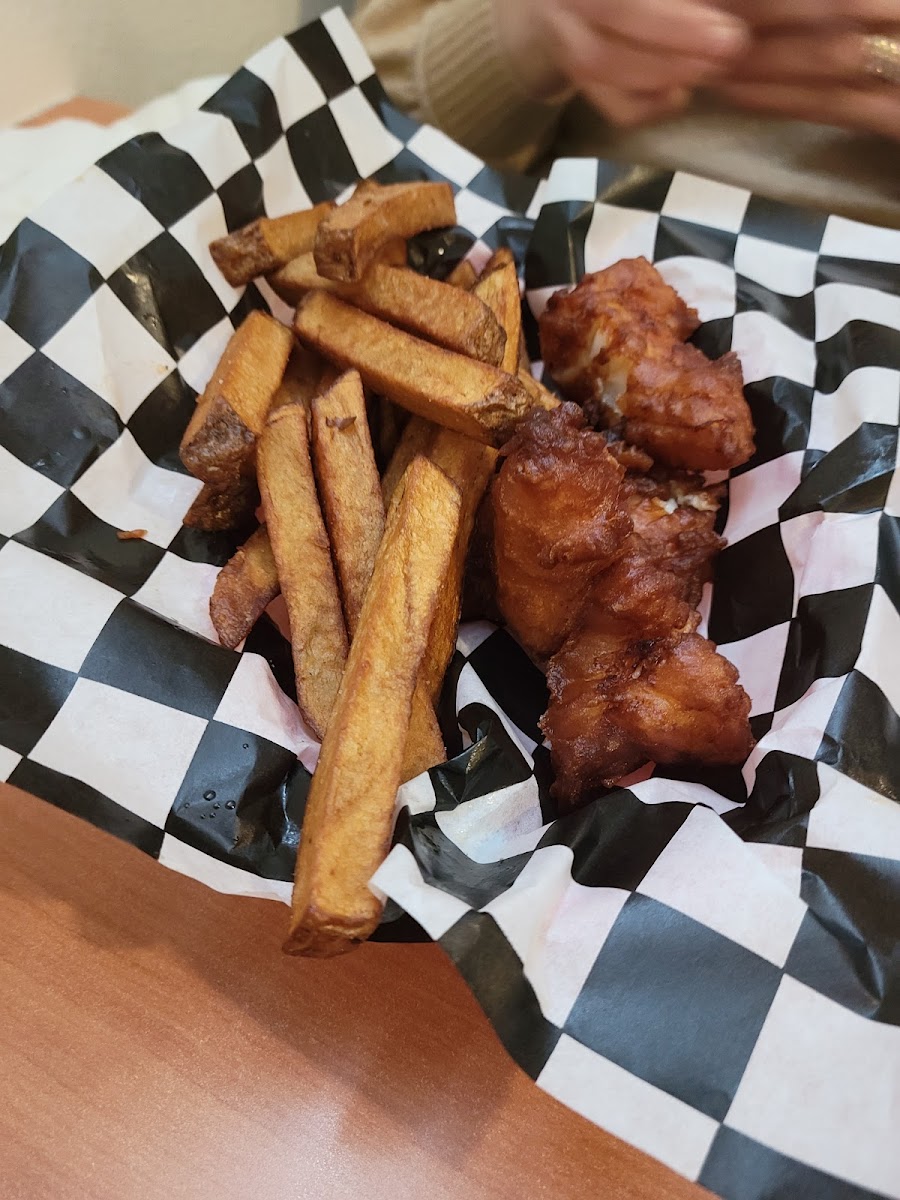 Had lunch on a Friday. Our order included Hush puppies, Cod Basket with fries, a Burger plate, and a Philly Steak Sandwich basket with onion rings. The Hushpuppies were golden and delicious. Fries were fresh cut potato fries, the burgers are ground on site and hand pattied, the Cod was deep fried a crispy golden brown, the onion rings were just the right done so onions were firm but not crunchy, and the philly steak meat was just right...not fatty or grizzly. The resturant is clean as well as the bathrooms are clean and styled nicely. Prices are right and reasonable.