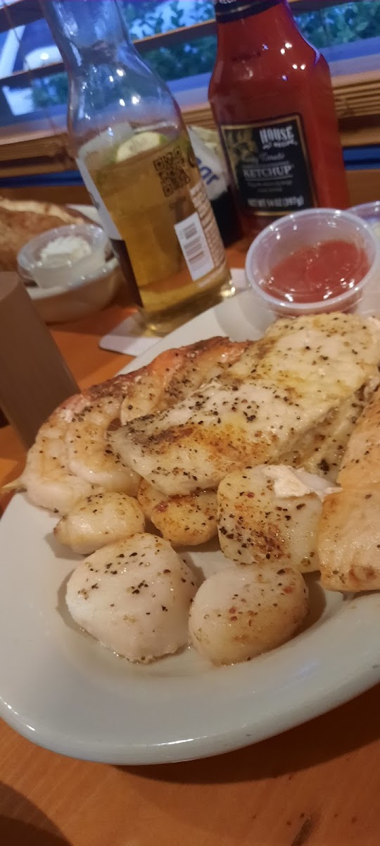 Nice, clean, surprise locals place that I didnt know was there. Very friendly service. Resonable prices. Shrimp and scallops were great, fish and salmon was cooked to death. Prime rib was excellent. Had a few food flaws. Never got my cole slaw. Wings were supposed to be mild, hot as heck. And the salmon...yikes, but will be back. Soon.