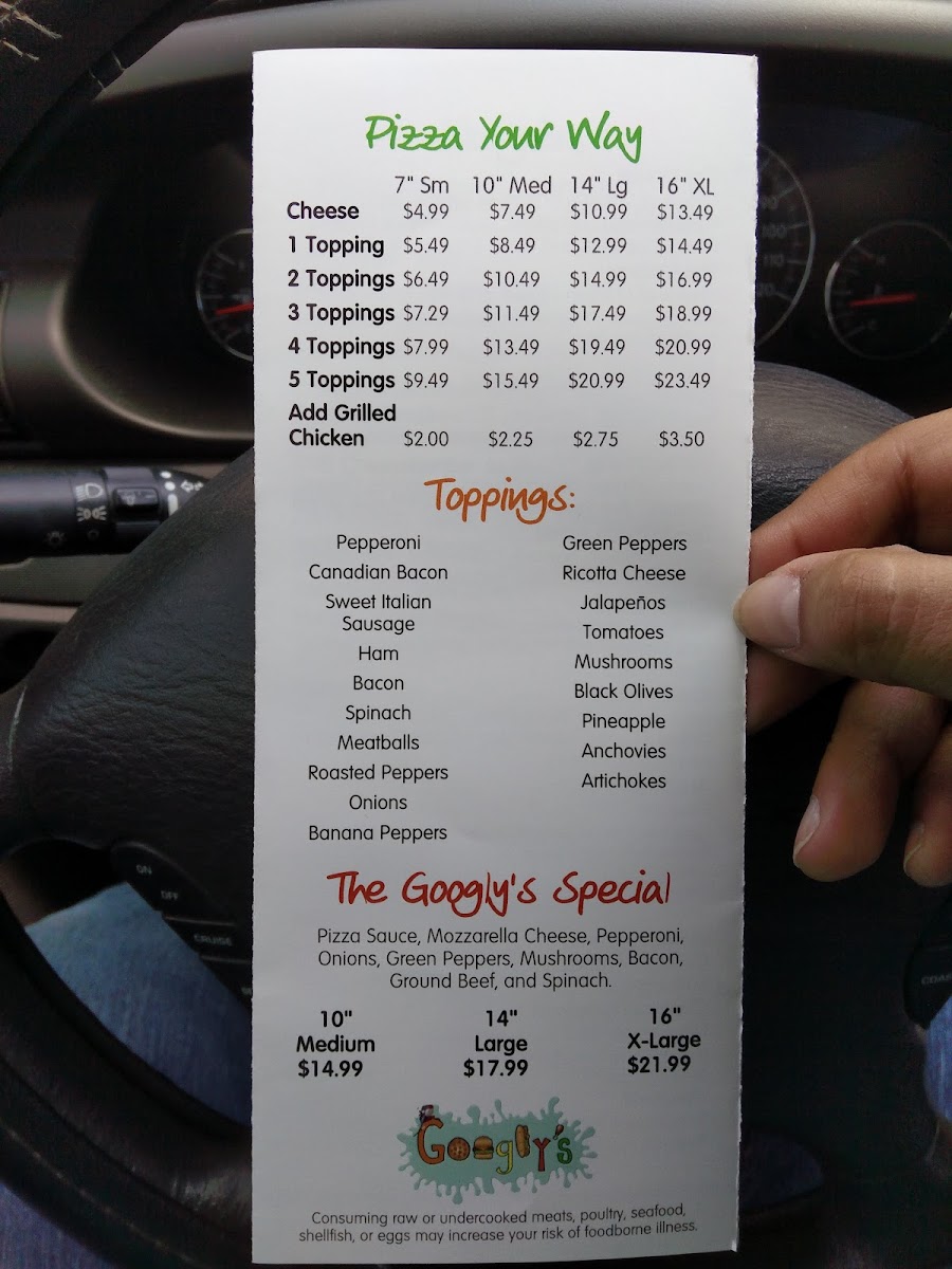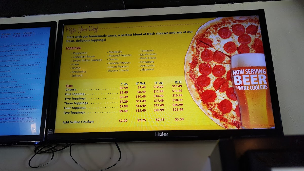 Pizza Sauce, Mozzarella Cheese, Pepperoni, Onions, Green Peppers, Mushrooms, Bacon, Ground Beef, and Spinach