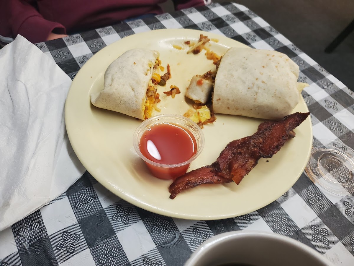 Love little hometown diners! We went about 5 minutes out of our way to stop for breakfast because of the high reviews. They did not disappoint! The inside is cozy with about 8 tables with 4-5 seats. The black and white checked tablecloths remind me of grandmas kitchen table where you took your time to enjoy her homemade cooking. Everything is cooked fresh and served pretty quick. When we arrived at 7am, the day after Christmas, there was already a group of locals hanging out and another group of workers came in before their day started to eat breakfast together. I love the community feel, like Cheers...everybody knows your name.