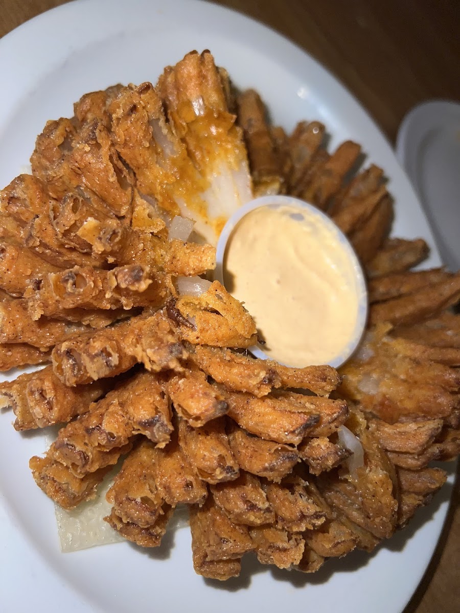 We Aw a sign in downtown Marion that stated “Eat Local,” so while we were in town we decided we would do just that! A friend recommended his place and told us “it doesn’t even have a sign.” I found that funny. Th food must be made THAT good! As a family, we were all able to find something to try off of the small menu We Reid cheese sticks (your standard fare), bloomin’ onion (not far off from Outback’s actually), and then we ordered Ribeye sandwich, hamburger steak, bbq sandwich, and teriyaki chicken. While all the food was good, I’m not sure I would stop by if you are super health conscious. Most of the “vegetables” were white. The chicken teriyaki was just that- chicken with a little onion - no veggies or colorful anything. The sides were French fries, baked potato, or sweet potato fries. The salad was standard iceberg lettuce, but that heirloom tomato slice on top was super yummy! It wasn’t bad, just not the healthiest option. The rest of the family enjoyed everything. Hubby said th hamburger steak had a great flavor. My daughter had the ribeye sandwich and after a little dip in some Heinz 57 she was pleased. I don’t have to guess how good the BBQ sandwich was because my son inhaled it. The food wasn’t fancy, but it was good. Some prices seem super reasonable, while a few seemed a bit much (the chicken was $16). Overall I would certainly make another stop here for an occasional comfort food meal. The atmosphere looked much like a bar- lower light levels, tv’s, string lights, but felt very family friendly. The service was stellar. If the server didn’t know an answer to a question she found out quickly and was super helpful.