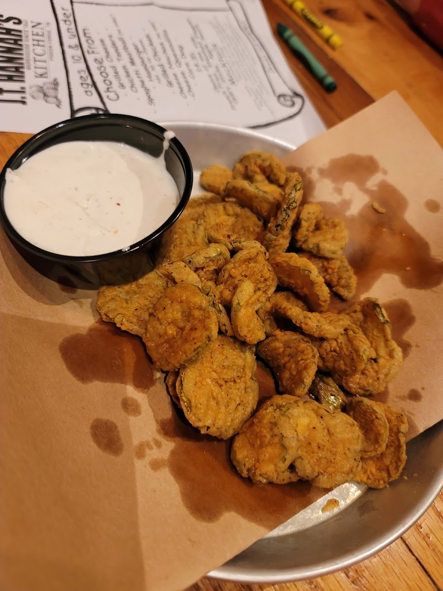 J.t. Hannah's Kitchen is an American restaurant located at 3214 Parkway, Pigeon Forge, TN 37863, United States, with an impressive 9,259 user reviews. Peak wait times occur on Monday evenings from 4:30 PM to 7:00 PM, Fridays from 5:00 PM to 8:00 PM, Saturdays between 5:00 PM and 8:30 PM, and Sundays from 5:00 PM to 8:00 PM, with waits up to 45 minutes at the busiest times. Popular dishes on the menu include Fried Pickles, Half Rack Ribs with Baked Beans and Slaw, Spinach and Artichoke Dip, French Dip Sandwich, and Chicken Parm, highlighting classic American comfort fare.