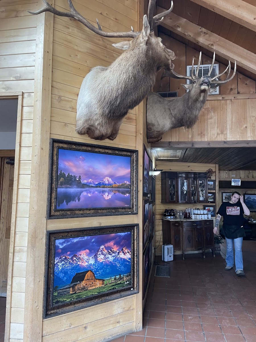 The place looked awesome so we pulled in. Upon entry we were greeted cordially and seated promptly. The decor was lodge motif and very warm and inviting. A large gift shop was available for our shopping pleasure, which we visited after our lunch However the "help wanted" sign should have been the indicator. We waited over a half hour for our food to come. The waitress was super and apologized repeatedly for the delay. We ordered the chicken dinner special and the taco salad. Sadly the chicken breast internally but the other pieces were cooked fine. Otherwise, It was very good but think the salad could have been a little bigger, even if it meant a price change. Still recommend giving this establishment a try. Timing most likely will be better in the future.