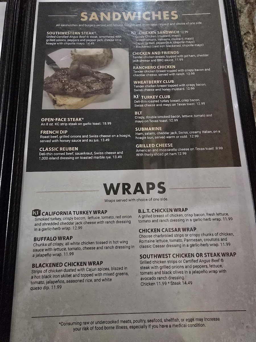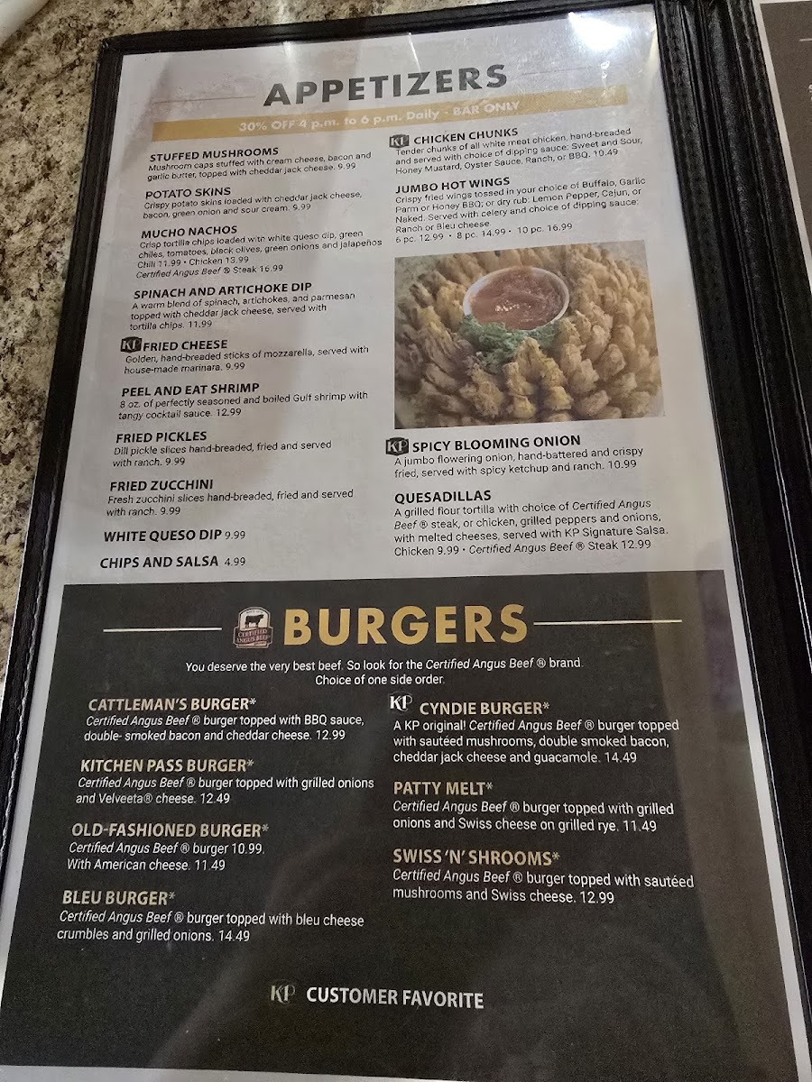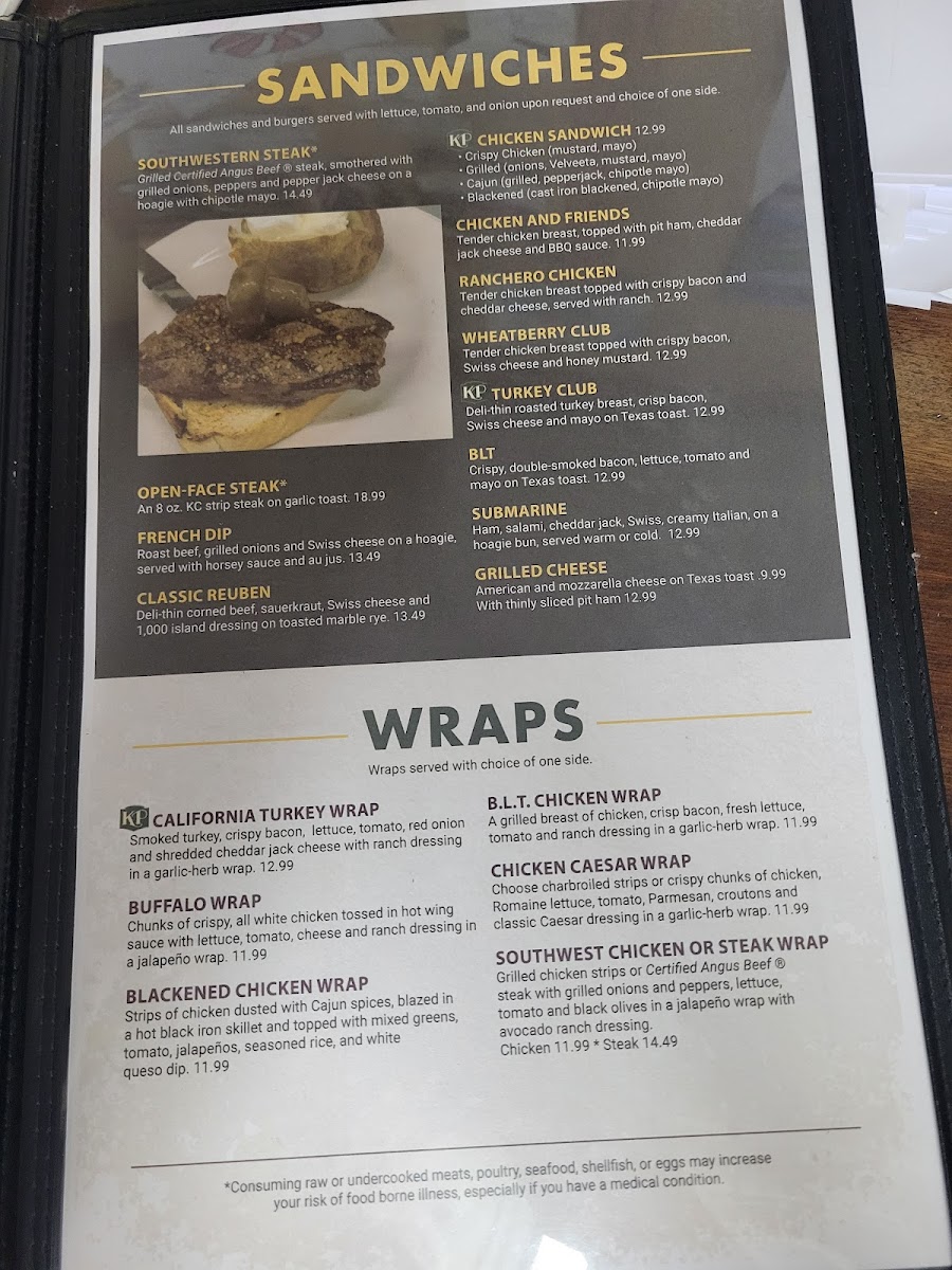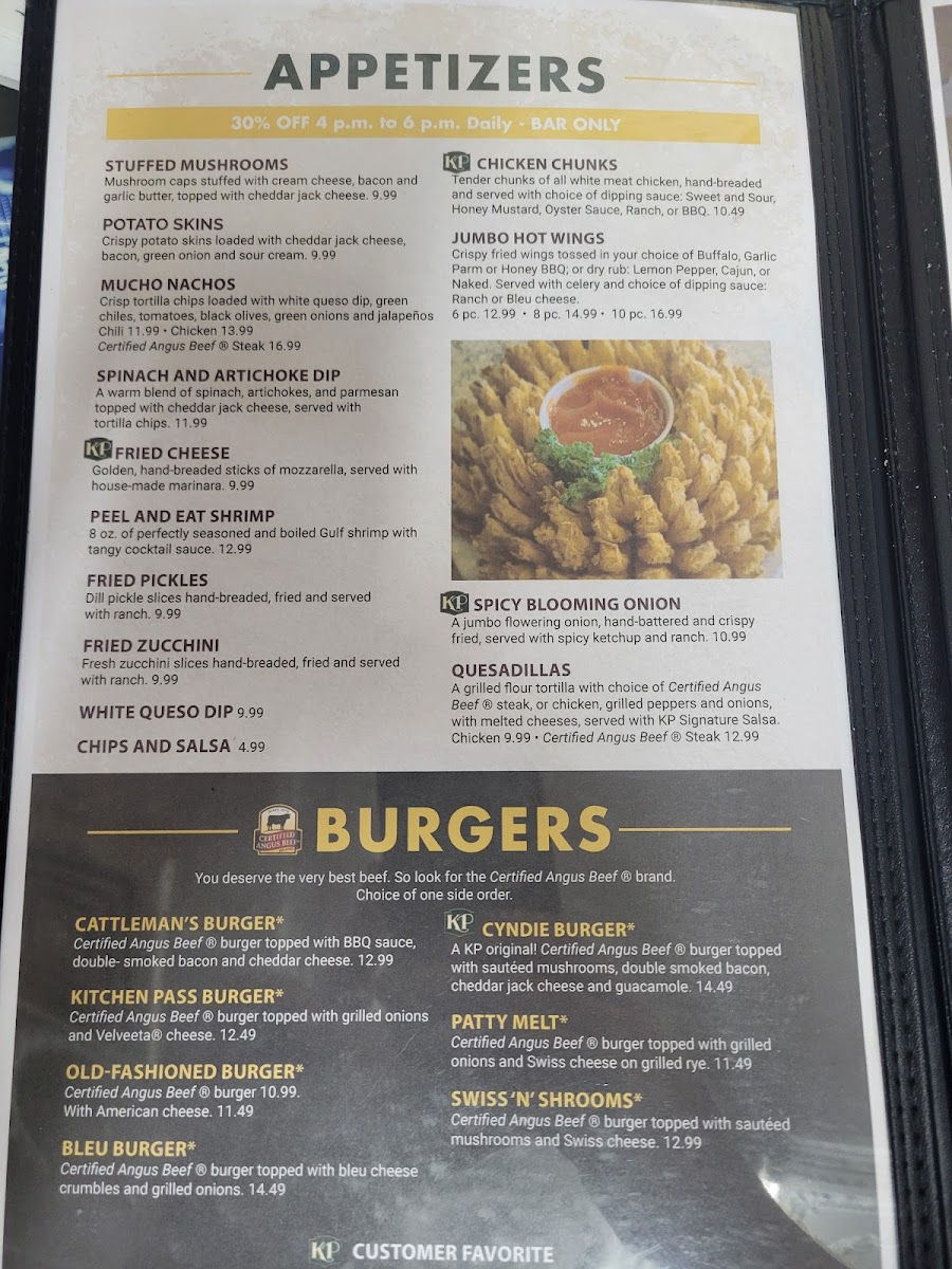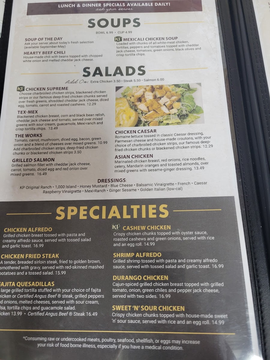 Grilled flour tortillas with choice of certified angus steak or chicken, grilled peppers and onions, with melted cheese, served with KP signature salsa.