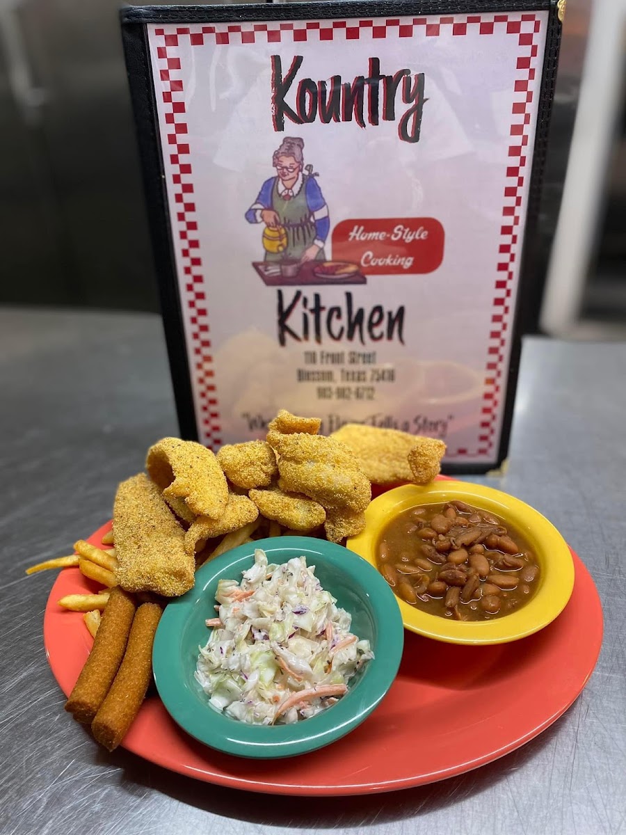 Fish was very good it is covered with cornmeal my wife had chicken fried steak and it was steak not patties. Will eat there again!!