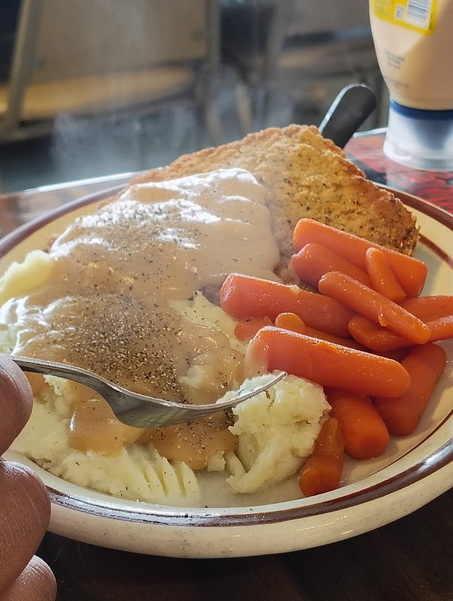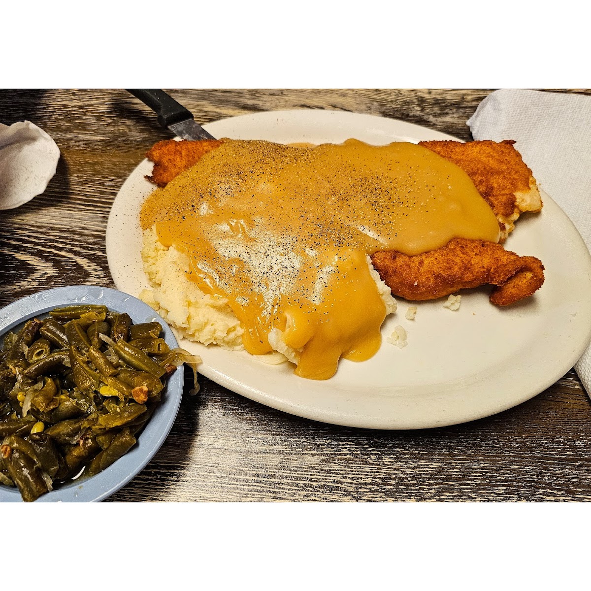 Tiny but excellent salad bar. Entrées are phenomenal! The catfish was wonderful, and the chicken fried chicken was melt-in-your-mouth delicious! And don't miss out on the Sidewinders: best fries I have ever had!