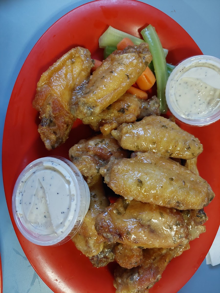 our waitress was very friendly, We really liked that the waitresses all seemed to work together as a team, bringing out drinks and food, doing refills, checking to make sure everything was okay. We stumbled upon this place, and we are glad we did because we've found our new wing joint. Family-friendly atmosphere, we called ahead. The waitress said it's best to call ahead if you possible. We will definitely be back! Thank you, moogies, for the amazing dinner P.s. Sorry about the mozzarella sticks and pickles pictures. we were starving lol and didn't get pictures fast enough. Wing flavors hot, BBQ, and garlic parmasean, majority of their sauces are made in house my husband loved the ranch and Bleu cheese