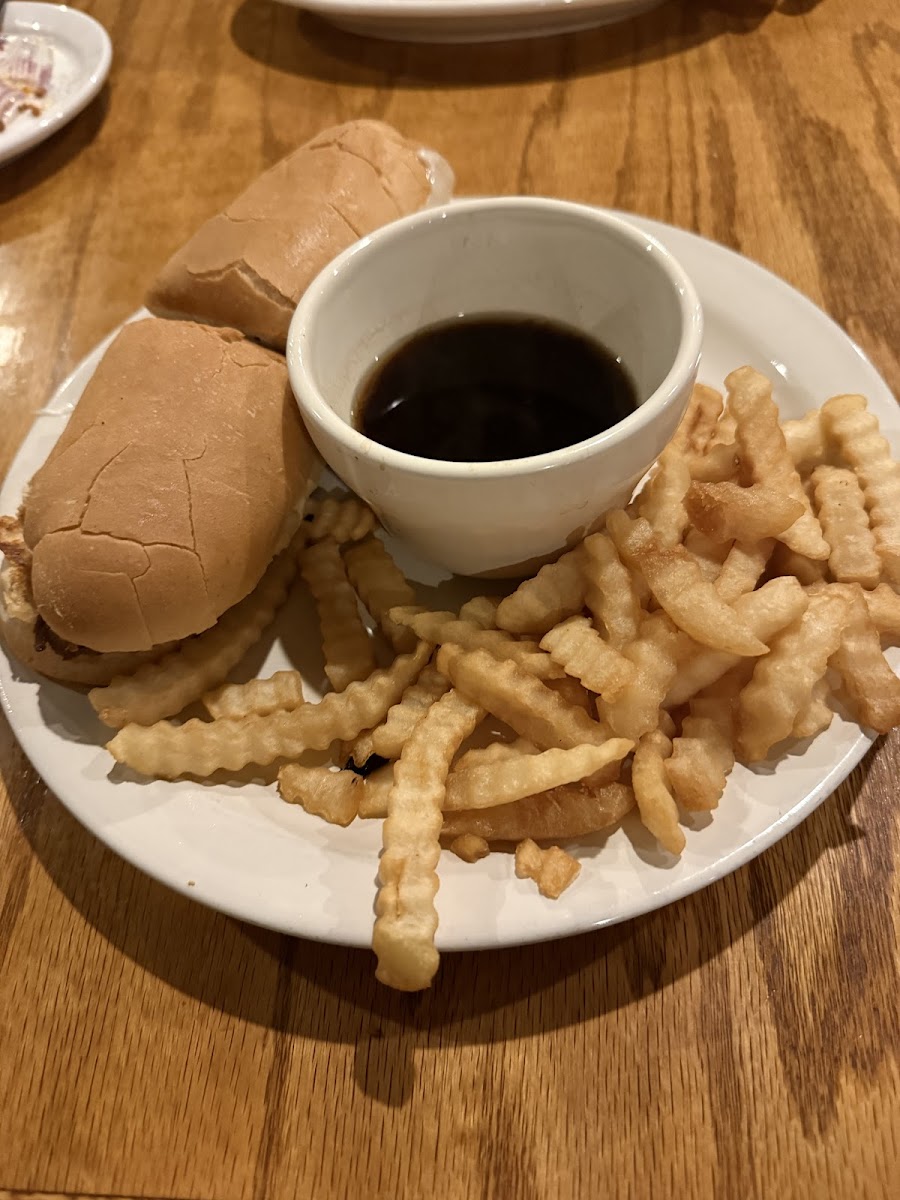 Place was pretty cute and homey and all employees we interacted with were very friendly and helpful. The parking area was pretty small if you’re wanted to park on the paved area. The food was decent. The Potato Skins appetizer could have used a little more seasoning/flavor as it was a little bland. The Sausage Sandwich was a hit and the chicken and rice soup (not pictured) was pretty tasty. The French Dip was good, but for my personal taste it could have used a horseradish sauce or similar to elevate it just a little more. The fries were unsalted, which is a pet peeve of mine. They didn’t add much to the overall meal. I think we’ll try it again, soon. I’d like to try some of their pasta dishes which sound amazing.