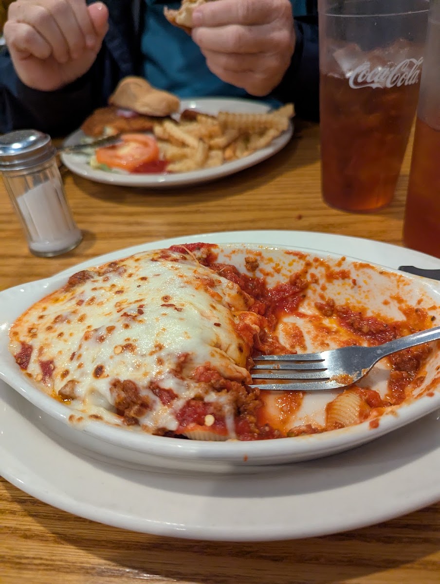 We stopped for lunch. The parking lot was almost full. Inside it was packed. We were told there would be a 15-20 minute wait unless we wanted to eat at the small mt bar. That was fine. Quick service. The food ( I had meatloaf, my wife had chicken parm) was great. Only knock was the bread was just slices of white bread and the salad was good but just plain lettuce and dressing. Pretty large portions. We took leftovers home for supper.