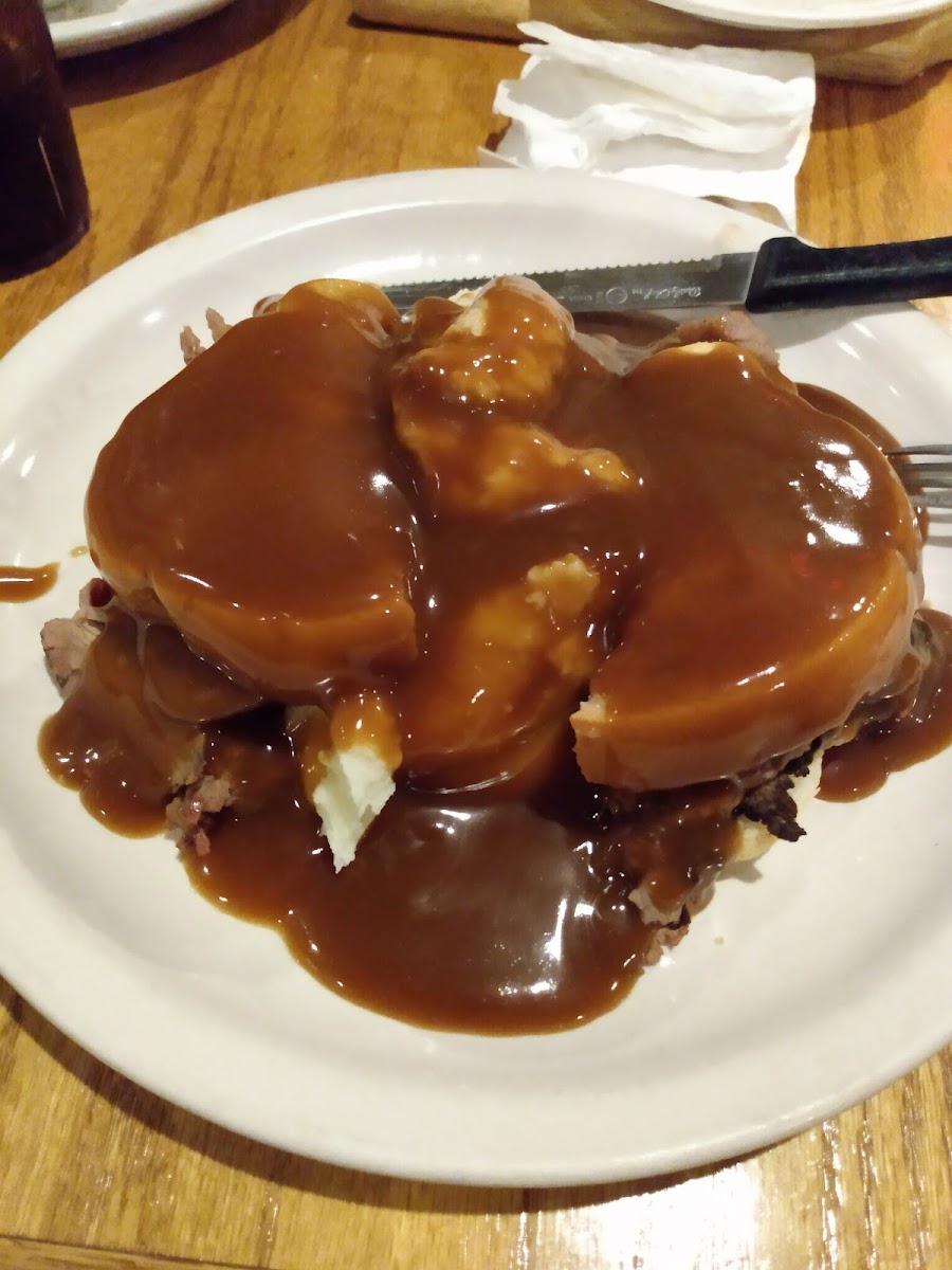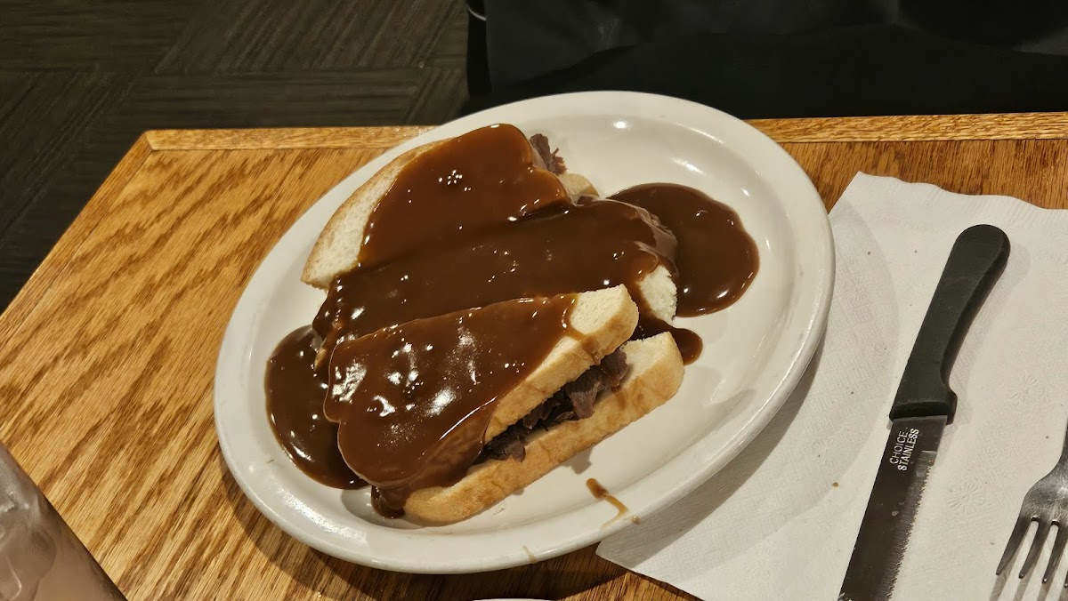 Nothing fancy here just good food. Portions are ample and the wait staff is really good at what they do. Hot beef sandwich was like manna from heaven. Salads could use a little sprucing up, don't remember there being a lettuce shortage. Potato soup was a 10 as was my meal.