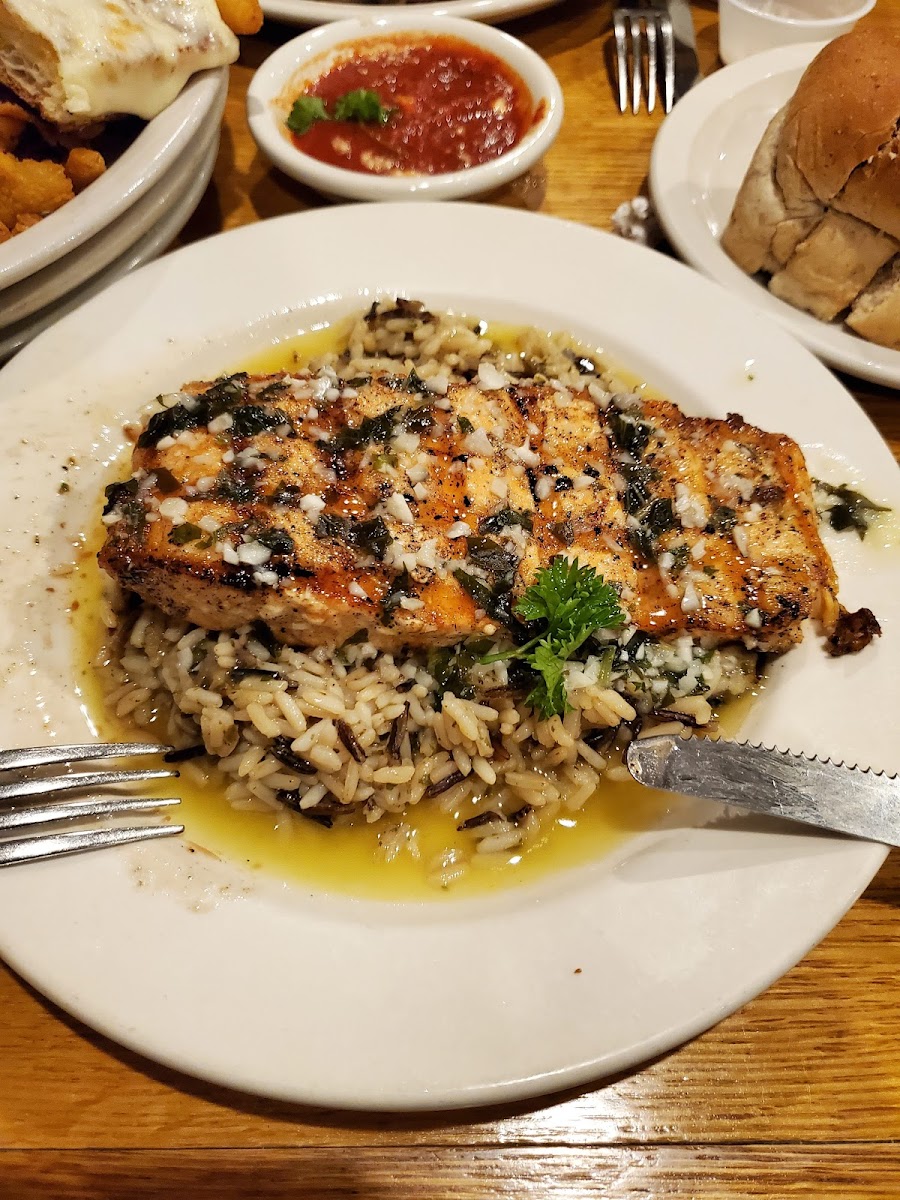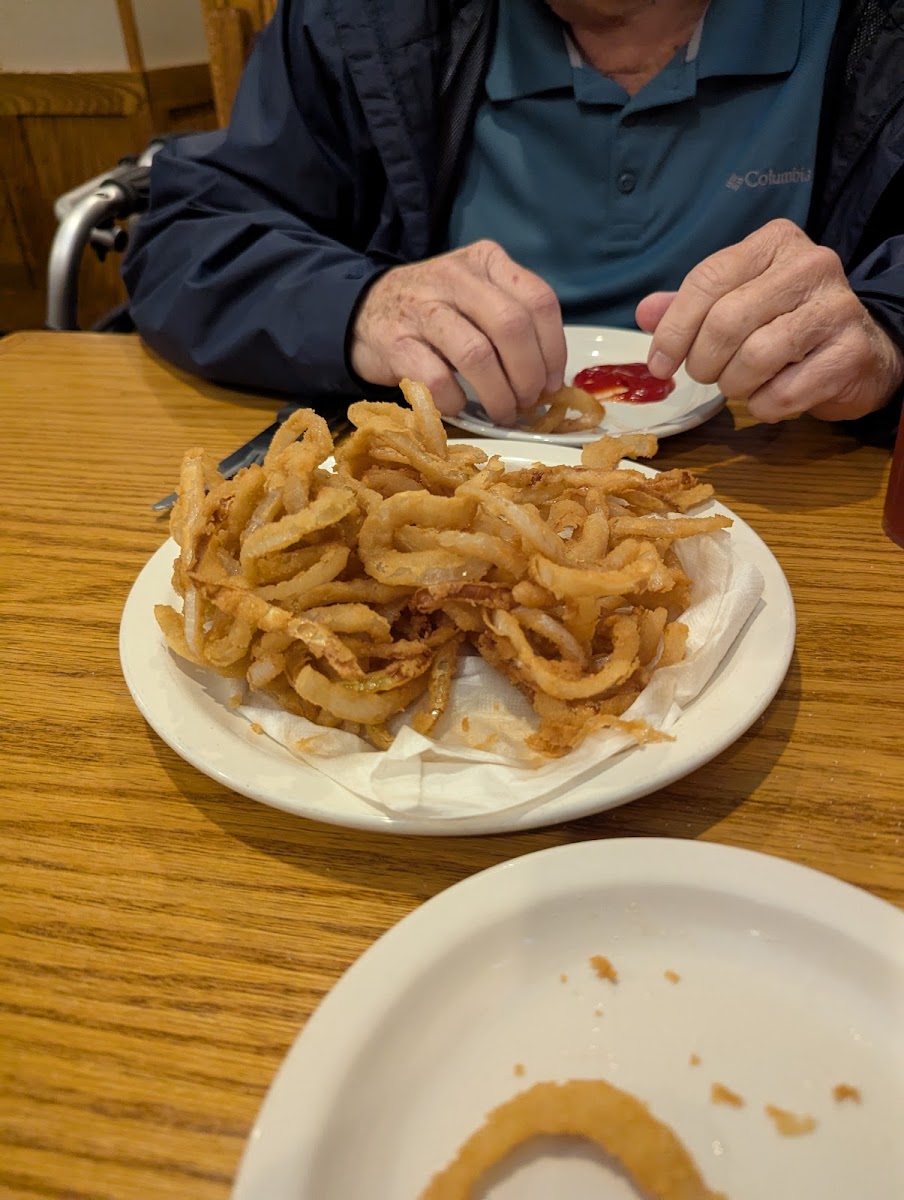 We have eaten here several times and we have always been happy with their delicious comfort food style dinners and their always friendly staff. This time I had their Tuscan chicken over a bed of seasoned rice and a side salad with their creamy parm dressing… it was some of the best chicken I have had in awhile and beat myself up for not taking any photos! It looked so good, I totally forgot. I did get a photo of the onion rings and ranch dressing that we always get for an appetizer and I highly recommend them for anyone that is an onion ring connoisseur. We usually get their steaks or meatloaf because they are always good but their hot beef and mashed potatoes are a favorite as well. I gave a 4 star for the atmosphere because the place is definitely dated but I also feel that it is part of the charm of this local favorite. All ages eat here and if you aren’t here by 5:00 pm… you are waiting for a table!